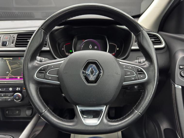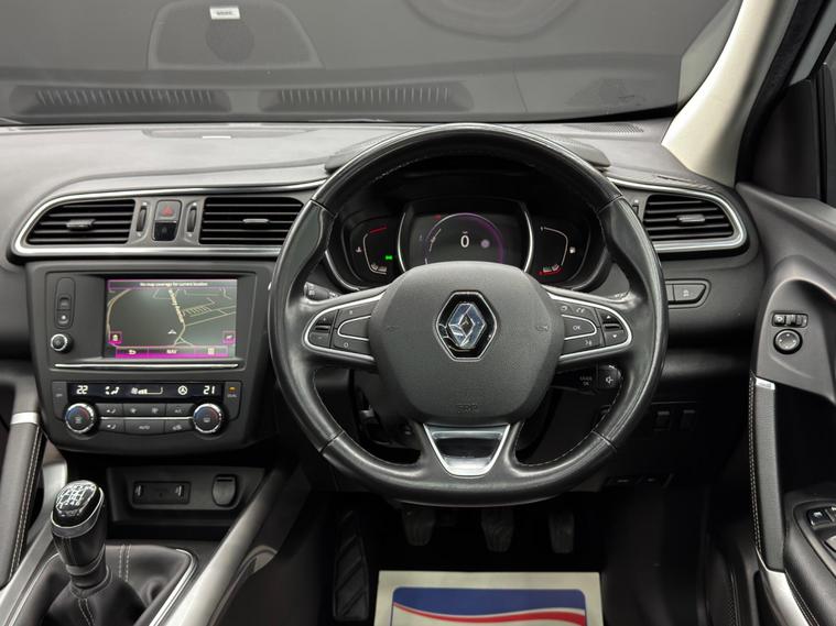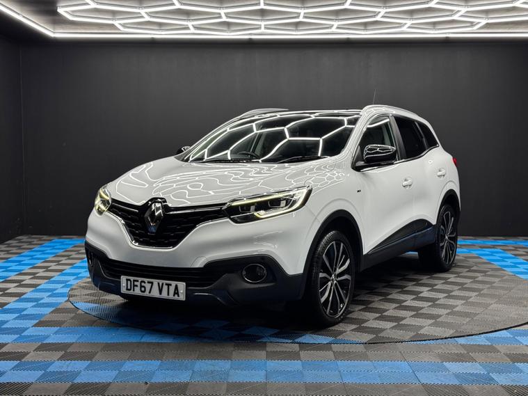 Here at Motor Gurus we are delighted to offer a Renault Kadjar 1.5 dCi Signature Nav. This vehicle is in immaculate condition inside and out. This specific vehicle is finished in a GLOSS WHITE and is contrasted by a BLACK LEATHER/CLOTH interior. This vehicle comes included with: FRONT & REAR PARKING SENSORS, PRIVACY GLASS, FIXED GLASS ROOF, BOSE SOUND SYSTEM, CRUISE CONTROL, TWIN CUPHOLDERS, CLIMATE CONTROL, SAT NAVIGATION, DR RADIO, BLUETOOTH AUDIO, TELEPHONE CONNECTIVITY, TYRE PRESSURE MONITORING AND MUCH MORE! We will also provide this vehicle with a 12 MONTH MOT as well as a FRESH OIL SERVICE before it leaves our premises (OTR)..