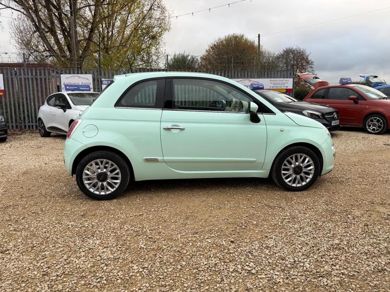 Fiat 500 1.2 Lounge Euro 6 (s/s) 3dr in Mint Green with a clean cloth interior. 70k miles with a full service history and MOT till April 2026. Just £35 per year road tax. Low insurance and just £35 Road Tax. Comes with a Glass Roof, CD player, Electric Windows, Alloy Wheels, Air Conditioning, Bluetooth, USB & AUX input and more. Drives very well.Book an appointment to view today. Part Exchange Welcome. Comprehensive AA warranties for 1, 2 or 3 years available. 3 months warranty included. Free 12 months AA Roadside Breakdown and Recovery Included. All Major Cards Accepted..