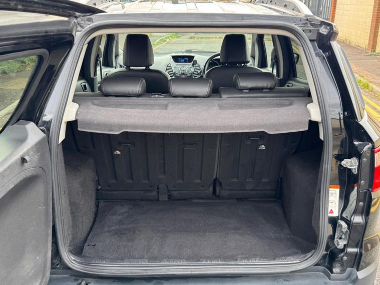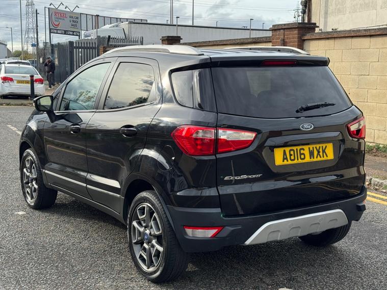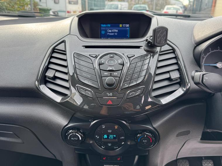 Ford EcoSport 1.0T EcoBoost Titanium 2WD Euro 5 (s/s) 5dr – AO16WXKThis 2016 (16 plate) Ford EcoSport Titanium is a practical, compact SUV offering comfort, efficiency, and great everyday usability. Finished in sleek black and powered by the award-winning 1.0T EcoBoost petrol engine, it delivers excellent fuel economy without compromising on performance. With 94, 300 miles and 2 owners, this vehicle is ULEZ compliant, making it ideal for city and long-distance driving alike.? Key Details:Registration: AO16WXKYear: 2016 (16)Mileage: 94, 300 milesFuel: PetrolTransmission: ManualOwners: 2Colour: BlackULEZ Compliant? Features:Titanium specification with premium interior trimSYNC Bluetooth connectivity and voice controlKeyless start and keyless entryCruise control and climate controlRear parking sensors17” alloy wheelsHeated front seatsElectric windows & mirrorsDAB radio & USB/AUX inputThe Ford EcoSport Titanium combines compact SUV practicality with modern features and stylish design. Its elevated driving position and nimble handling make it perfect for both urban and motorway driving.✅ Finance available✅ Ready for test drive today.