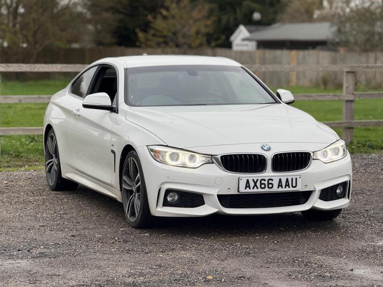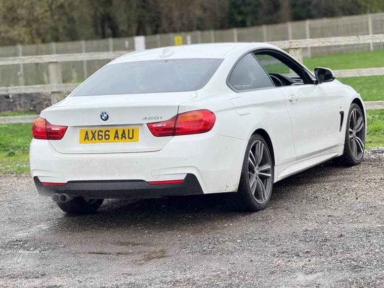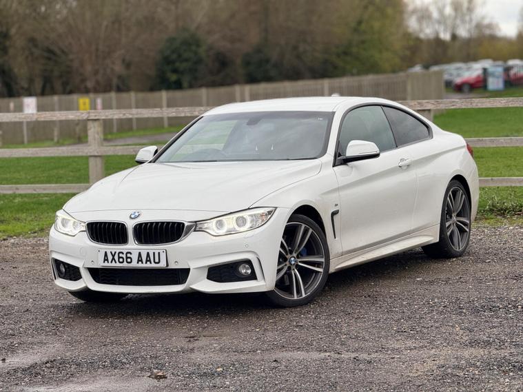 Harman kardon sound system?TOP SPEC?HPI clear?Full service history?Engine and gearbox warranty available ? 1 year AA breakdown cover ? Finance available ? Nationwide delivery available ? Smoke free ?Pet free ?Long MOT ? Inspection report ?Immaculate condition This 2016 BMW 4 Series 420i M Sport presents an exceptional ownership proposition with only two previous owners and a remarkably low mileage of 55, 000 miles for its age. This Euro 6 compliant model boasts a 2.0 litre petrol engine and is finished in the desirable M Sport trim, further enhanced by the M Sport Plus Package. You will appreciate the premium sound experience offered by the Loudspeaker System from Harman Kardon, while the M Sport Braking System ensures confident stopping power. Convenience is key with automatically dimming folding door mirrors and Bluetooth hands free connectivity for seamless audio streaming.This BMW 4 Series 420i M Sport offers several advantages that set it apart. Its impressive fuel economy of 49 mpg means fewer stops at the petrol station, and its low CO2 emissions are beneficial for the environment. Furthermore, its low insurance group rating indicates that running costs are kept to a minimum. Practicality is also a strong point, with generous boot space making it suitable for everyday use and longer journeys alike..