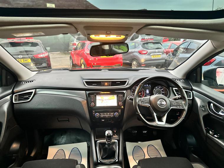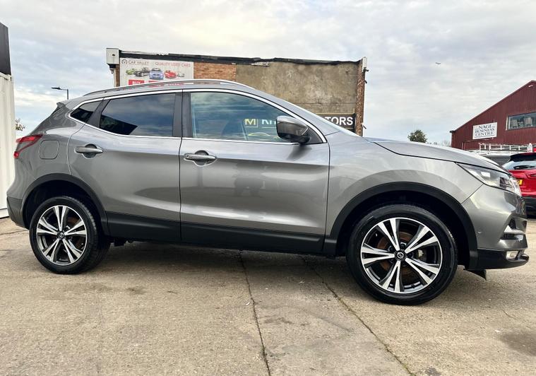 Presenting this Nicely Clean Nissan Qashqai for Sale, in very good body condition Interior and Exterior, Panoramic Roof, 360° Camera and Parking Sensors, Keyless Entry, Touchscreen, Bluetooth/USB Connectivity, DAB radio, Climate Control Air Conditioning, ISOFIX, Cruise Control & Speed Limiter, Very safe, Stylish, Economical and Reliable.Mechanically perfect. MAJOR SERVICE DONE - NEW TIMING CHAIN, NEW OIL, NEW OIL FILTER, NEW AIR FILTER. NEW FRONT BRAKE DISCS AND PADS. HPI CLEAR. 2 KEYS. ONLY 1 PREVIOUS OWNER. FULL SERVICE HISTORY PRESENT. FRESH MOT JUST DONE NO ADVISORIES. COMES WITH 3 MONTHS WARRANTY ON EGINE AND GEARBOX FLEXIBILITY TO EXTEND TERMS. 12 MONTH FREE AA BREAKDOWN COVER.FOR MORE DETAILS PLEASE CALL US.This 2019 Nissan Qashqai DIG T N Connecta has been cherished by just one owner since new, offering a superb example of this popular family SUV. Powered by an efficient 1.3 litre petrol engine and meeting Euro 6 emissions standards, this N Connecta model comes equipped with the desirable Smart Vision Pack, featuring front and rear parking sensors, alongside an Intelligent Around View Monitor with a 360 degree camera for effortless manoeuvring. Inside, you'll find dual zone climate control air conditioning to keep everyone comfortable, while the Safety Shield Plus system includes Blind Spot Assistance for added peace of mind. Intelligent automatic headlights further enhance the driving experience.This Qashqai stands out with its low CO2 emissions, making it an environmentally conscious choice. Furthermore, its placement in a low insurance group means that running costs are kept to a minimum, offering excellent value for money compared to similar vehicles. This combination of advanced technology, comfort features, and economical ownership makes this Nissan Qashqai a compelling option for those seeking a practical and well equipped compact SUV..
