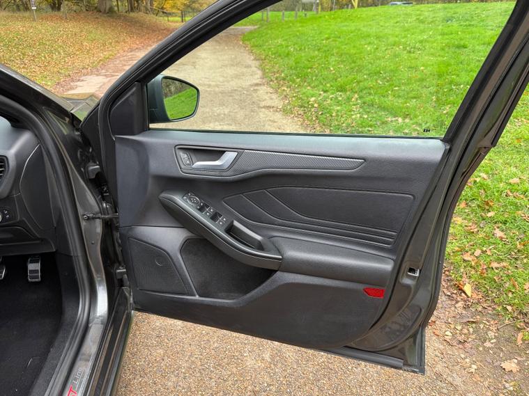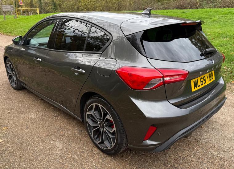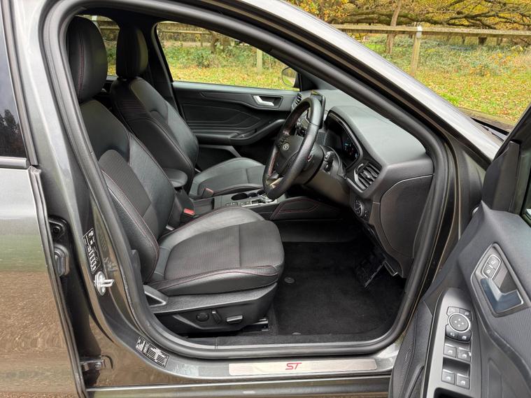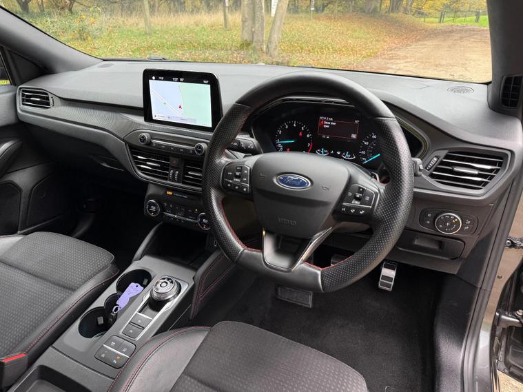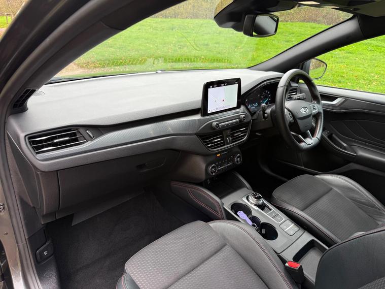 This 2019 Ford Focus ST-Line X presents an exceptional opportunity with its remarkably low mileage of just 31, 700 miles, a clear vehicle history check, and a powerful 1.5L petrol engine. As a Euro 6 compliant model, it combines performance with efficiency. The ST-Line X trim level ensures a sporty aesthetic and a host of desirable features, including a convenient 2nd load floor for added practicality.Experience enhanced comfort and connectivity with this Focus. The DEATC dual-zone electronic automatic temperature control allows for personalised cabin climate, while the Ford SYNC3 DAB Navigation System, compatible with Android Auto and Apple CarPlay, keeps you informed and entertained on every journey. For those chilly mornings, the driver and passenger heated seats offer welcome warmth. The impressive 0-62mph acceleration in just 8.4 seconds highlights its dynamic driving capabilities, setting it apart from other vehicles in its class. Front and rear parking sensors, along with parking assistance, make manoeuvring in tight spaces effortless..