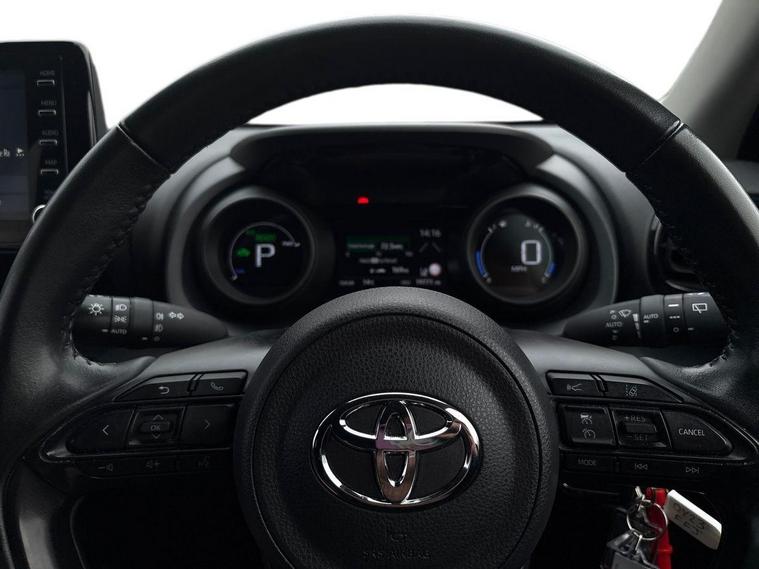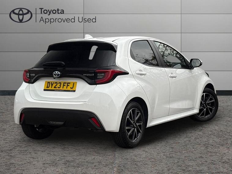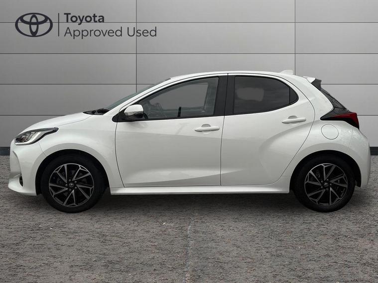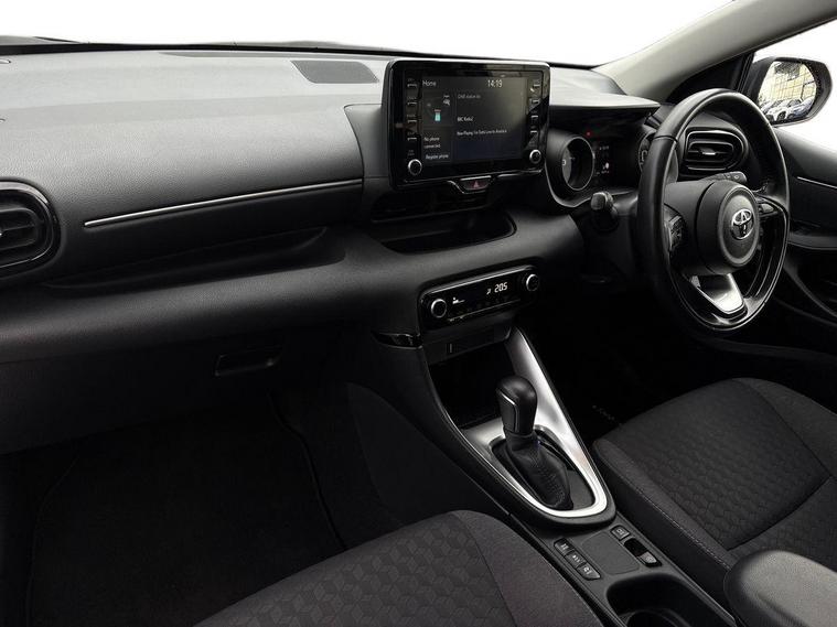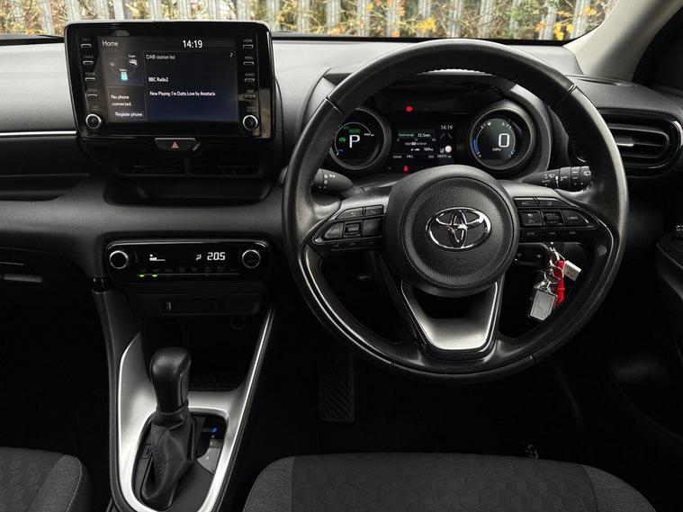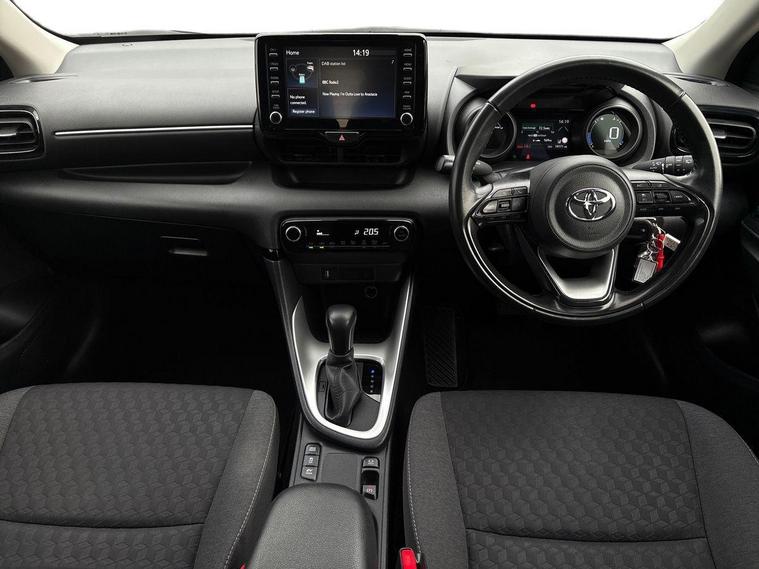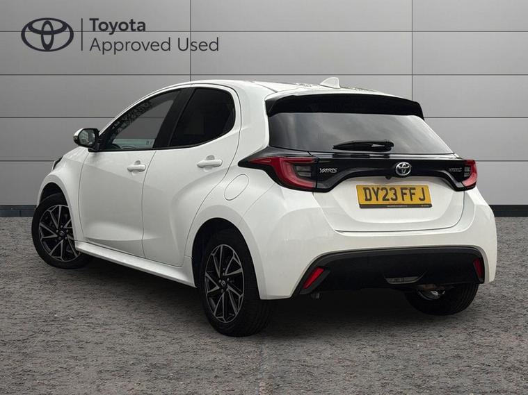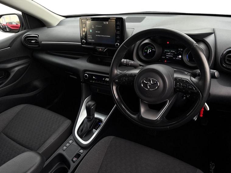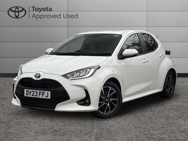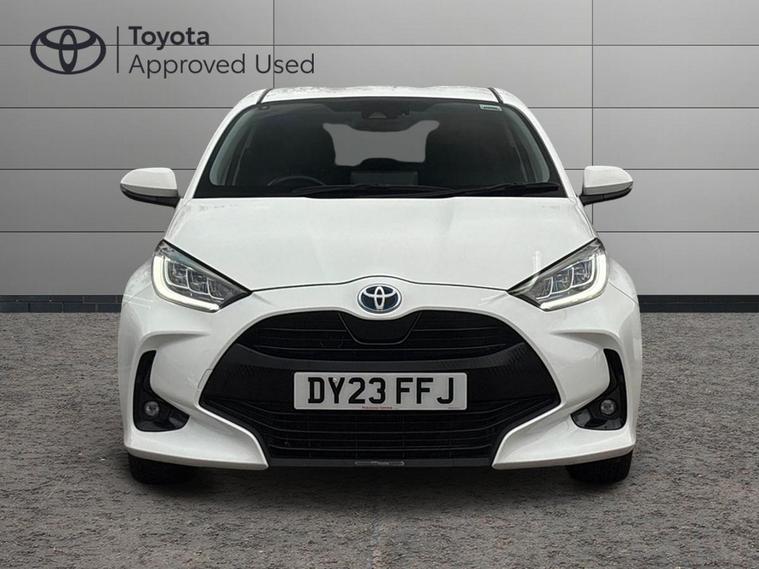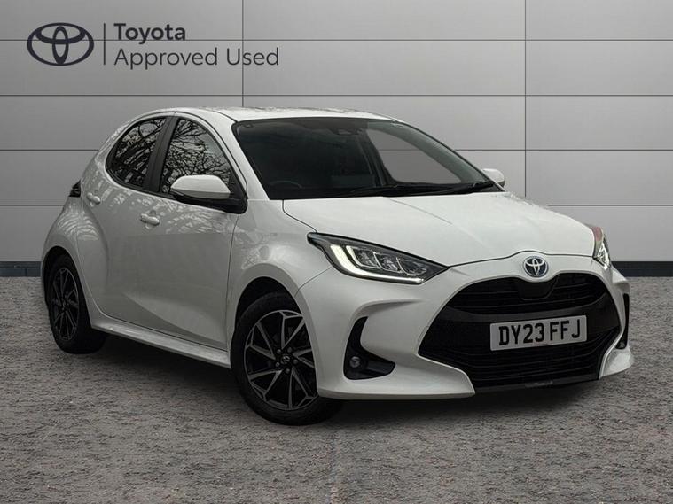 This 2023 Toyota Yaris VVT-h Design is a Toyota manufacturer approved vehicle, boasting a single owner from new and a comprehensive 12 month warranty for your peace of mind. This Euro 6 compliant model features a responsive 1.5L petrol hybrid engine and comes with an MOT valid until June 2026. Inside, you'll find a wealth of notable features designed for convenience and safety, including smartphone integration with Apple CarPlay and Android Auto, LED front light guides for enhanced visibility, and Toyota Safety Sense 2 which includes adaptive cruise control. Parking is made easier with a reversing camera, and the automatic air conditioning ensures a comfortable cabin temperature.The Yaris VVT-h Design stands out with its impressive fuel economy, achieving a remarkable 69 miles per gallon, which indicates it is more economical than many similar vehicles. Furthermore, its low CO2 emissions highlight its environmental consideration. This combination of efficiency, advanced technology, and Toyota's renowned reliability makes this Yaris a compelling choice for those seeking a practical and sophisticated compact car..
