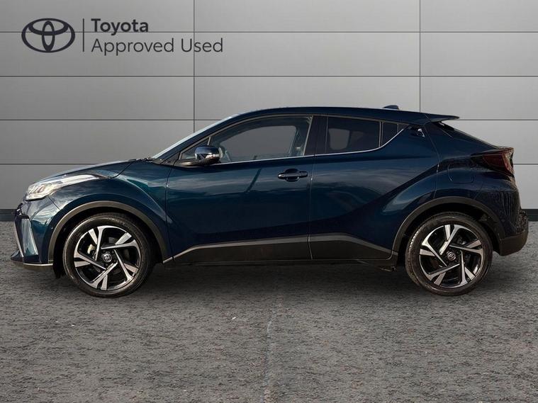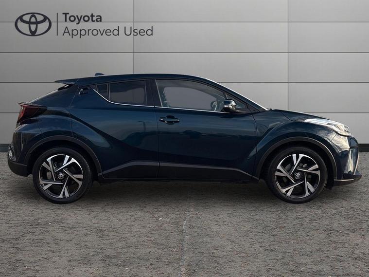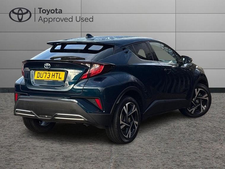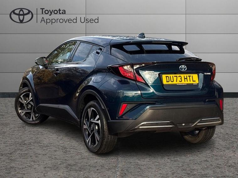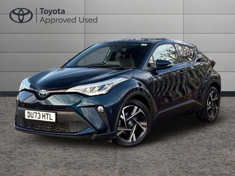 This 2023 Toyota C-HR VVT-h Design is a Toyota manufacturer approved vehicle, boasting a full service history and only one previous owner, with its MOT valid until September 2026. This Euro 6 compliant model features a 2.0L petrol hybrid engine and comes with a 12 month warranty for your peace of mind. Notable features include Dual-Zone Automatic Air Conditioning, Blind Spot Monitor with assistance, Auto Headlights, Adaptive Cruise Control, and Bluetooth Connectivity, all contributing to a comfortable and convenient driving experience.The C-HR Design offers impressive efficiency, achieving a highlight of 53 mpg, and benefits from a low insurance group and low CO2 emissions, making it an economical choice. Its performance is equally noteworthy, with an acceleration of 0-62mph in just 8.2 seconds. These highlights demonstrate how this particular C-HR stands out from other vehicles in its class, offering a compelling combination of advanced technology, efficiency, and performance..