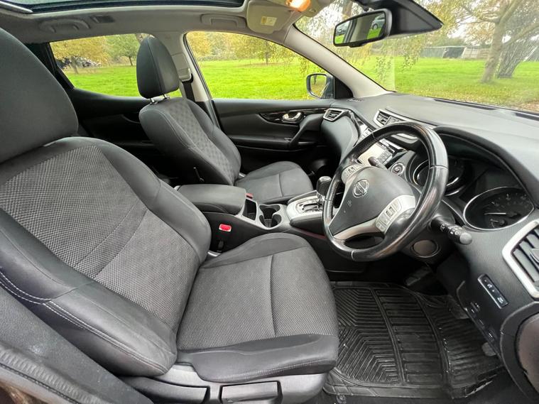 By appointment onlyTidy & good value top spec Qashqui at Woodland Prestige! Finished in metalic bronze with stunning contrasting black cloth interior. High-Spec - Automatic, Petrol ULEZ CompliantPremium audio, 360 camera Panoramic glass sunroofPremium Leather Heated front SeatsBluetooth Audio & Navigation Unmarked gloss black Alloy WheelsClimate Control This high spec Nissan boasts a plethora of options, making it an absolute head-turner. It comes with a full service history and has been well maintained with good lower mileage. Visit our Website - dealer's website Nationwide Delivery AvailablePart Exchange WelcomeFinance from 9.9% APRYour purchase includes:6-Month Extendable WarrantyFresh 12-Month MOTRecent Service Experience peace of mind with your purchase from us. Woodland Prestige is a 5-star rated business on Google and AutoTrader. We also provide:12-Months AA Breakdown CoverDrive-Away InsuranceAA Assured SchemeBuy with confidence, and explore financing options on our website: dealer's website Only - Enquire today and reserve your dream car!''.