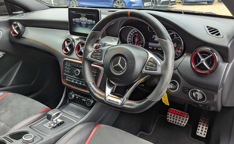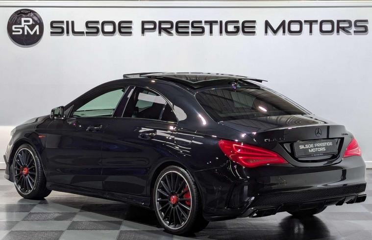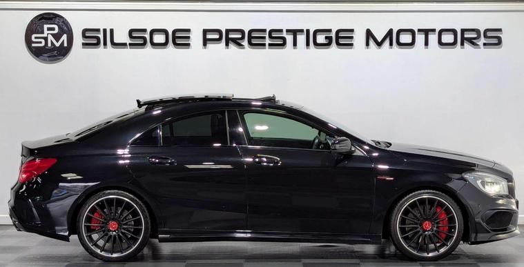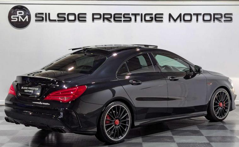 Introducing the stunning Mercedes-Benz Cla 2.0 CLA45 AMG 4Matic Auto 4WD 4dr in sleek Black finish. This exceptional vehicle comes packed with luxurious extras to elevate your driving experience.Feel the power of the Surround Sound System by Harman Kardon Logic 7 with Dolby Digital 5.1 and DTS as you cruise down the road. Maneuver with ease using the Reversing Camera and stay on track with the Satellite Navigation - COMAND Online System.Turn heads with the 19-inch Alloy Wheels in AMG Multi-Spoke Design, painted in striking Matt Black. Let the sunshine in with the Panoramic Sliding Sunroof, adding a touch of elegance to your journey.Step inside the Cosmos Black interior, featuring Artico Leather-Dinamica Microfibre in Black with Red Contrast Stitching for a sophisticated look. The Brake Calipers painted in Red add a sporty touch, while the Heated Front Seats provide comfort during chilly drives.Experience the thrill of the road with the AMG Performance Exhaust System, delivering an exhilarating driving experience. Don't miss out on the opportunity to own this exceptional Mercedes-Benz Cla - a true masterpiece of engineering and style.KEY FEATURESHARMON KARDONREVERSE CAMERAAMG EXHAUSTHEATED SEATSAMG NIGHT PACKRED CALLIPERSCOSMOS BLACK METALLICACTIVE PARKING ASSIST WITH PARKTRONICDRIVERS SEAT ELECTRIC WITH MEMORYAMG PERFORMANCE STEERING WHEELPANORAMIC SLIDING SUNROOFCRUISE CONTROLTYRE PRESSURE MONITORING SYSTEMCOMMAND ONLINEADAPTIVE HIGH BEAM ASSISTINTELLIGENT LIGHT SYSTEM19'' AMG , MULTI SPOKE ALLOY WHEELS WITH GOOD TYRES**WE CHARGE AN ADMIN ON ALL OUR VEHICLES***Here at Silsoe Prestige Motors, we're proud to be rated 4.8 stars on Google. We are regulated by the FCA and offer flexible finance options. Our finance team works with a variety of lenders and sub-lenders to secure the best possible deal for you, subject to terms and conditions. For more information on finance options, please contact our sales team at 01234532657 or via WhatsApp at 01234532657 or 01234532657.We also offer additional warranty packages up to 3 years at competitive prices.Other services include:Competitive prices on part-exchangeNationwide delivery optionsArranged video calls for car viewingsCeramic paint application on request at fair pricesInstallation of ghost immobilisers and trackers for enhanced security and reduced insurance premiumsDriveaway insurance available for up to 5 days on a fair price.For further details, please reach out to us at 01234532657, call 01234532657, or visit us in Silsoe, Bedfordshire MK45 4QR. Use ''Silsoe Prestige Motors'' in your maps for accurate directions. We are conveniently accessible from the A1 and the M1.Our opening hours are:Monday to Saturday: 9:30 AM - 6:00 PMSunday: 11:00 AM - 4:00 PMAll dealer facilities are available, including finance and warranty options. Vehicle specifications are provided by a third party, so please confirm details with our sales team. All our cars are HPI clear, and we also buy cars at trade prices.For our full range of vehicles, visit Silsoe Prestige Motors. For any inquiries, call, text, or WhatsApp our sales team on 01234532657.Please note that data is pulled from a third-party source, so please confirm specifications with one of our sales team member.Please visit dealer's website for our full range of stock..