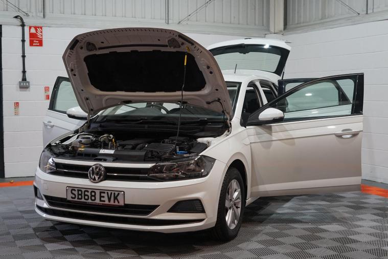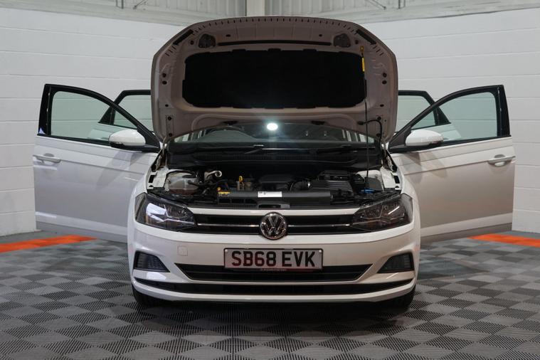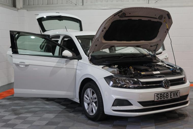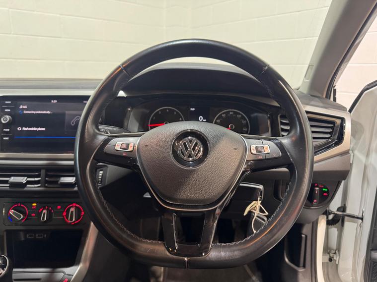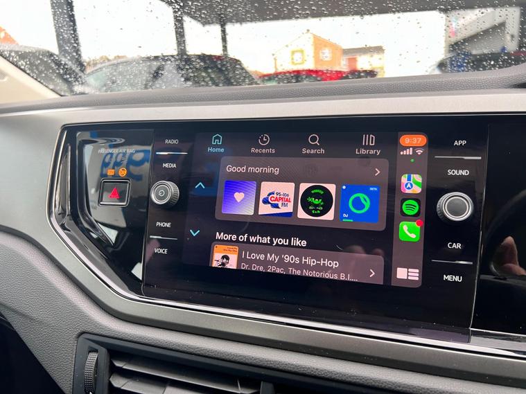 Finished in the ever-popular Pure White, this Volkswagen Polo 1.0 EVO SE perfectly blends smart styling, comfort, and practicality — making it an ideal choice for both new drivers and those looking for an efficient and dependable hatchback.Under the bonnet lies Volkswagen’s reliable 1.0 EVO petrol engine, offering a smooth and economical drive while maintaining low running costs. Its Euro 6 compliance ensures excellent fuel efficiency and reduced emissions, making it a great choice for both city driving and longer commutes.The exterior is sleek and contemporary, complemented by a set of 15-inch alloy wheels that add a touch of style to this compact yet refined hatchback. Inside, the cabin is spacious and well-finished, with a layout that reflects Volkswagen’s focus on quality and comfort.Technology is at the forefront of this Polo SE, featuring Apple CarPlay and Android Auto for seamless smartphone integration, allowing you to access navigation, music, and calls directly from the central touchscreen. The FM, AM, and DAB radio ensures you’re never short of entertainment options, while the intuitive satellite navigation system helps make every journey effortless.The multifunctional steering wheel with cruise control adds convenience on longer drives, allowing for smooth and relaxed motoring. Thanks to its low insurance group and excellent reliability record, this Polo represents outstanding value for money and practicality.Stylish, efficient, and packed with modern features, this Volkswagen Polo SE in Pure White is the perfect balance between everyday usability and refined German engineering — ideal for drivers who appreciate comfort, technology, and low running costs in one sleek package..