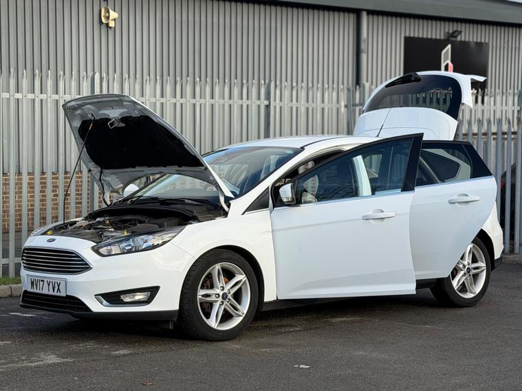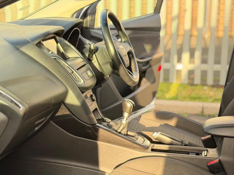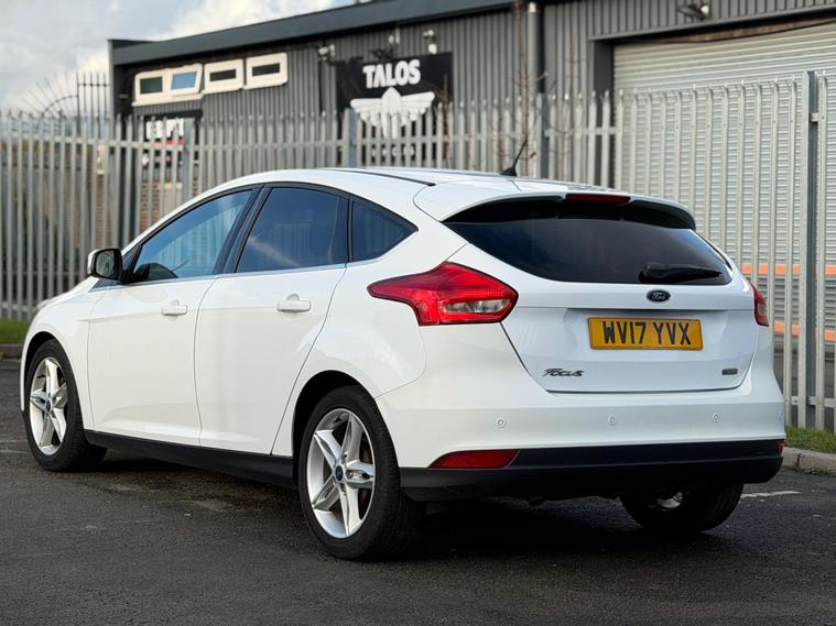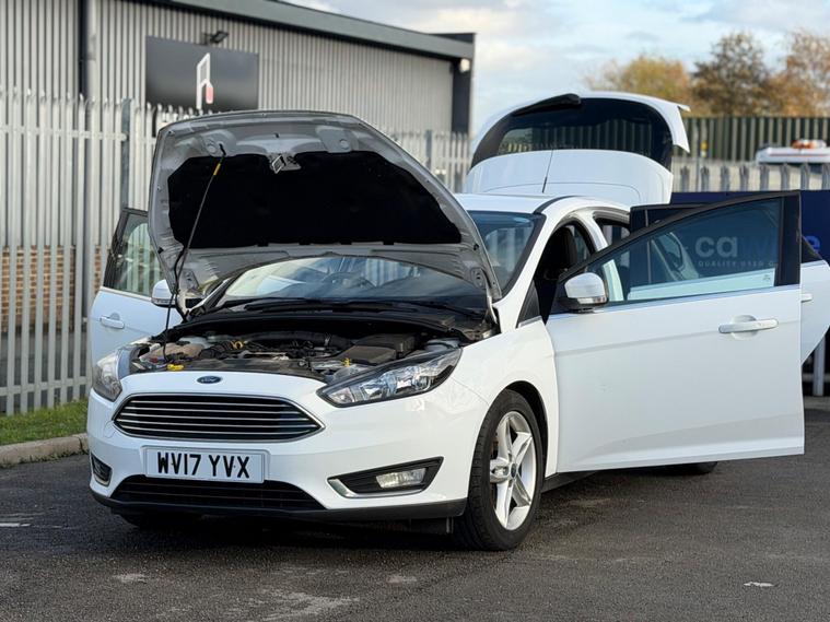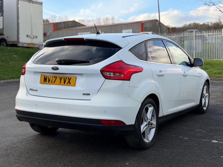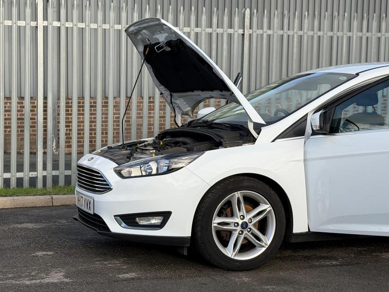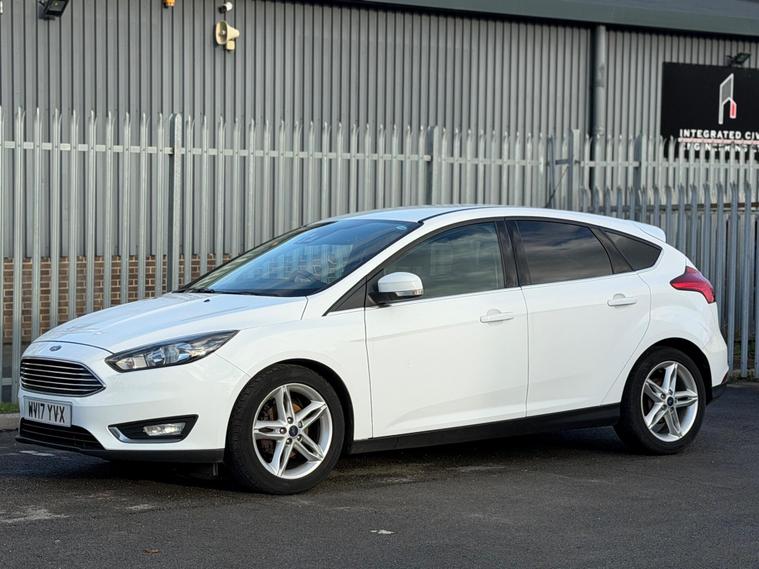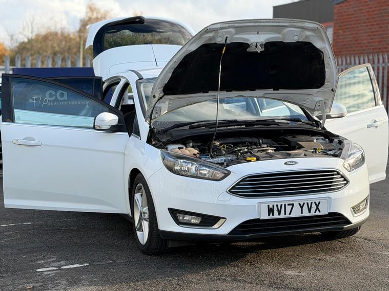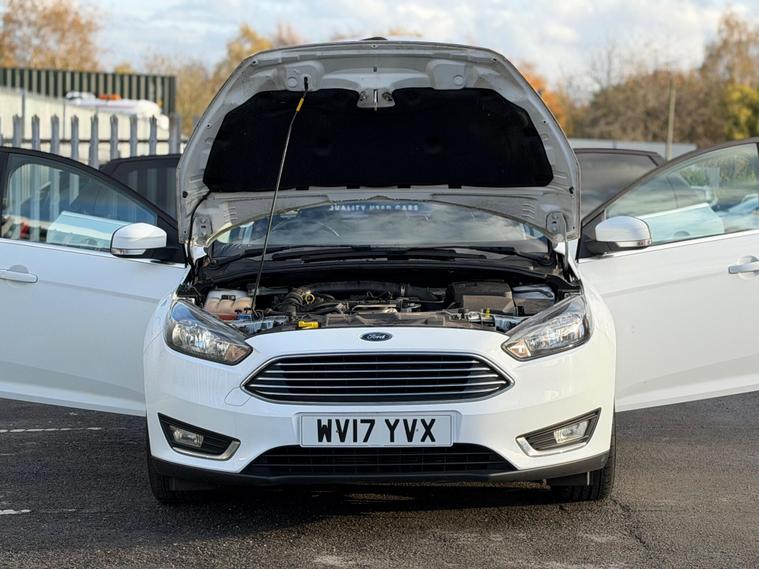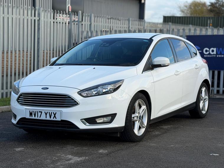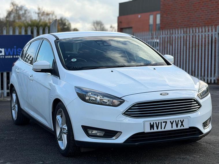This 2017 Ford Focus Titanium boasts an MOT valid until August 2026, offering excellent peace of mind for the coming years. This Euro 6 compliant 1.0L petrol model comes with a clear vehicle history check and a 3 month warranty for added reassurance. Its partial service history includes a last service at 79, 200 miles on 13 November 2025, ensuring it has been maintained.Experience impressive fuel economy with this Focus, achieving a highlight of 60 mpg, which is better than many similar vehicles. You'll also appreciate the generous boot space, perfect for all your needs, and its low CO2 emissions. This Titanium trim level is equipped with a Bluetooth Handsfree Phone System, rear parking sensors for easier manoeuvring, and dual zone climate control for personalised comfort..
