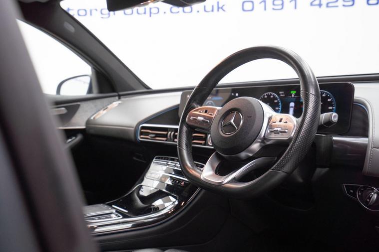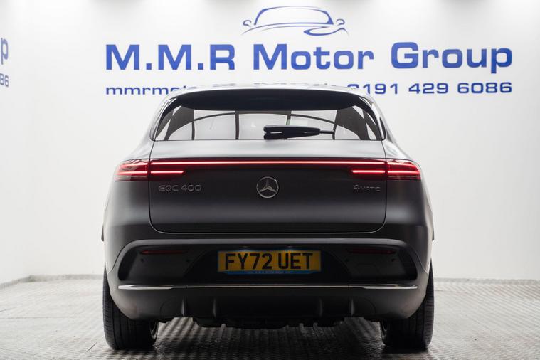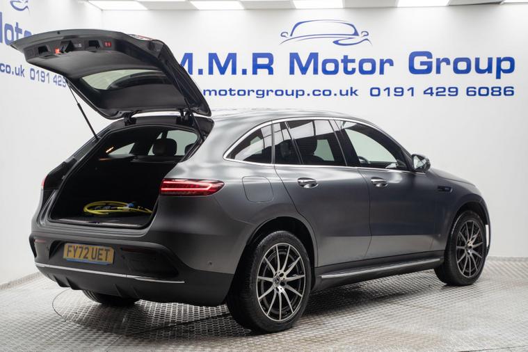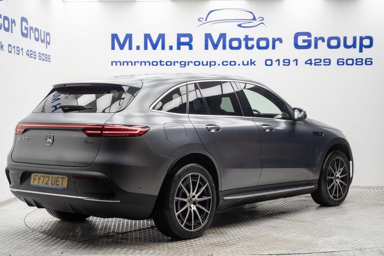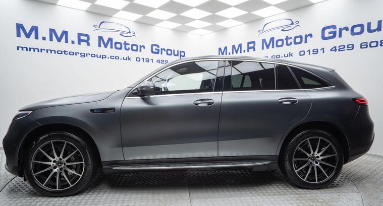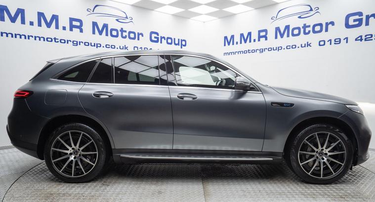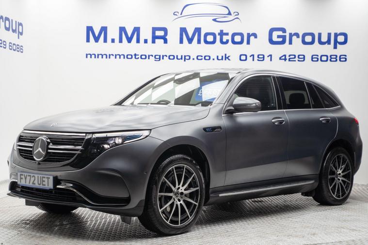 This 2022 Matt Grey Mercedes-Benz EQC 400 AMG Line is a superb example, having had only one owner since new . As an all electric vehicle, it offers a smooth and quiet driving experience, powered by a substantial 88 kWh battery that provides a maximum range of 245 miles when fully charged. This Four Wheel Drive model combines impressive performance with advanced technology, featuring the Driving Assistance Plus Package for enhanced safety, including adaptive cruise control and blind spot assistance. You'll also appreciate the premium Mercedes-Benz Sound System, KEYLESS-GO Comfort Package for effortless entry, and heated front seats for added comfort during colder journeys. The MULTIBEAM LED headlights ensure excellent visibility in all conditions.The EQC 400 AMG Line truly stands out with its dynamic capabilities, accelerating from 0-62mph in a swift 5.1 seconds, demonstrating its powerful electric drivetrain. Charging is convenient, with a full charge at home taking approximately 12 hours and 13 minutes using a 7kW charger, while rapid public charging can take you from empty to 80% in just 45 minutes. This vehicle also boasts a large boot space, making it practical for everyday use and longer trips alike. These features collectively highlight how this Mercedes-Benz EQC offers a refined, capable, and technologically advanced electric motoring experience.Please call our experienced sales team on 01914800597 for any additional specification queries, an in depth appraisal/ Video call or maybe we can help fund your new car. All our vehicles are prepared to the highest standards by our expert technicians in our fully equipped preparation centre as we're an AA approved dealer. Every car must go through a strict and thorough inspection, Items that require attention, mechanically or cosmetically are addressed prior to delivery. We offer a wide range of Finance and Warranty packages as well as fantastic trade rates for allow wheel refurbs/colour changes, window tinting and much more. Vehicles are supplied with pre delivery service, 12 months MOT and warranty..