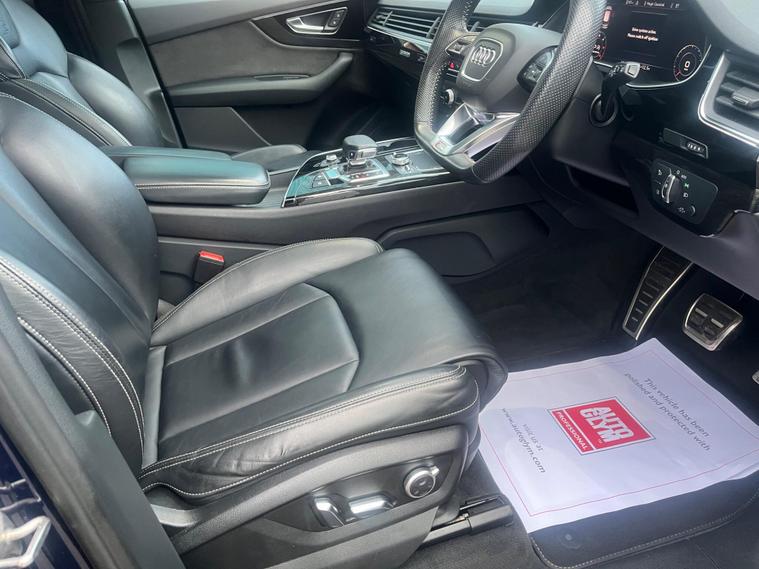 This 2019 Audi Q7 TDI V6 Black Edition offers an exceptional blend of performance and practicality, boasting a powerful 3.0L Diesel engine and a sophisticated Four Wheel Drive system. As a Euro 6 compliant vehicle, it meets stringent emission standards. This spacious SUV comfortably seats seven occupants and comes equipped with a comprehensive Trailer Pack, including a towbar, allowing for a substantial towing weight of 3500 kg. Inside, you'll find a luxurious Full Leather Package, the convenience of the Audi Phone Box with Wireless Charging, and seamless integration with your smartphone via the Audi Smartphone Interface, supporting both Android Auto and Apple CarPlay. The Bluetooth interface ensures effortless connectivity for calls and media.The Q7 TDI V6 Black Edition stands out with its impressive acceleration, reaching 0-62mph in just 6.3 seconds, demonstrating its dynamic capabilities. This performance, combined with its Euro 6 rating and a low insurance group, indicates that this Audi Q7 offers a more economical and engaging driving experience compared to many similar vehicles. The inclusion of the Black Edition trim further enhances its distinctive styling, making it a compelling choice for those seeking a premium, versatile, and well equipped seven seat SUV.AUDI SERVICE HISTORY.