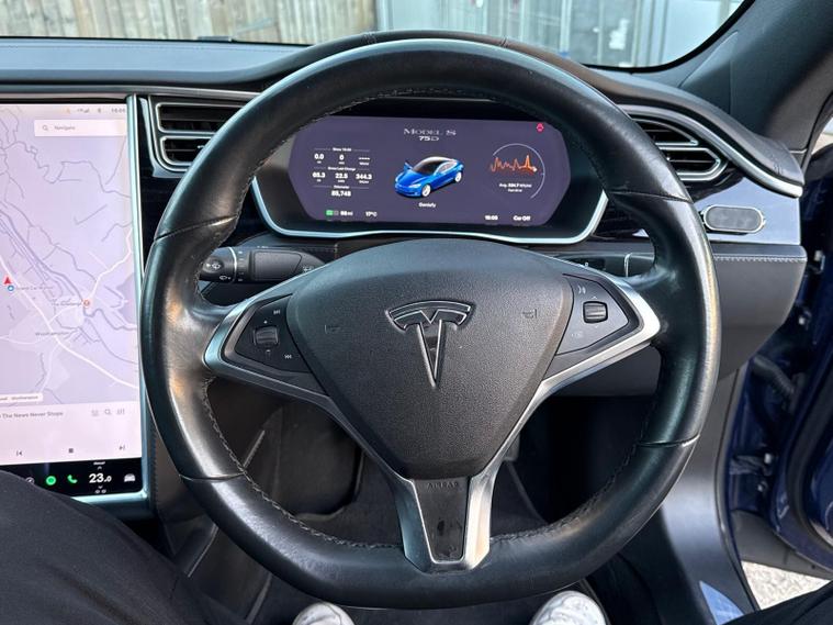 This 2018 Tesla Model S 75D offers an impressive electric driving experience with its Four Wheel Drive system. This model boasts a 75 kWh battery, providing a maximum range of 304 miles when new. Charging at home on a 7kW charger will take approximately 12 hours for a full charge, while rapid public charging can replenish the battery from empty to 80% in just 45 minutes. Inside, you'll find the Premium Upgrade Package, which includes heated seats and a heated steering wheel for added comfort. The car also features automatic LED headlights, keyless entry for convenience, and a blind spot warning system to enhance safety. Stay connected on the go with handsfree talking via Bluetooth.The Tesla Model S 75D stands out with its remarkable acceleration, achieving 0 to 60 miles per hour in a swift 5.2 seconds, demonstrating its performance capabilities. This electric vehicle also offers generous storage with its large boot space, making it practical for everyday use and longer journeys. The 304 mile maximum range when new highlights its efficiency and suitability for a variety of driving needs, setting it apart from many other vehicles in its class..