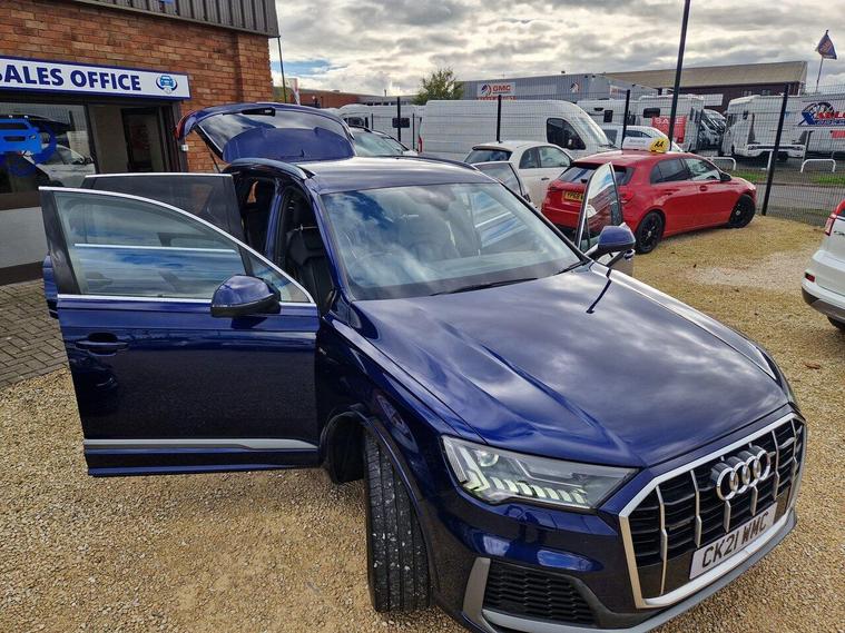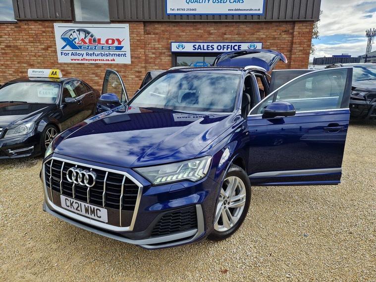 Boasting a full dealership service history and a clear vehicle history check, this 2021 Audi Q7 TFSI V6 S line offers exceptional provenance. This impressive seven seater is equipped with a powerful 3.0 litre petrol engine and a four wheel drive drivetrain, ensuring a confident and capable drive. The S line trim level adds a touch of sporty sophistication, while its Euro 6 emission class reflects modern environmental standards.This Audi Q7 is designed for practicality and performance. Its acceleration from 0 to 62mph in just 5.9 seconds demonstrates its dynamic capability, a notable advantage over many similar vehicles. Furthermore, its generous boot space provides ample room for luggage or shopping, and its substantial 3500 kg towing weight makes it ideal for those needing to tow. With a 12 month MOT provided on purchase and a three month warranty, this vehicle is ready for its next adventure..