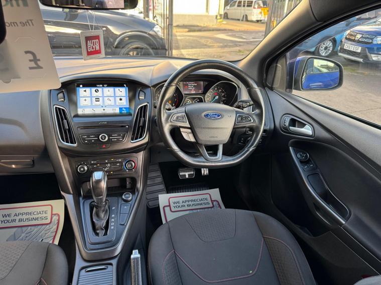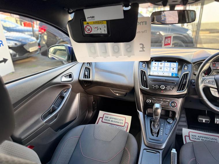 HERE WE HAVE ON SALE THE POPULAR FORD FOCUS 1.0T ECOBOOST ECOBOOST ST-LINE EURO 6 FINISHED IN METALLIC dealer's website WITH SATELLITE NAVIGATION, BLUETOOTH, CRUISE CONTROL WITH SPEED LIMITE, MULTIFUNCTIONAL STEERING WHEEL, ELECTRIC WINDOWS WITH ONE TOUCH, ELECTRIC AND HEATED MIRRORS, FORD SYNC3 DAB RADIO, AIR CONDITIONING, ELECTRIC PARKING BRAKE, HILL START ASSIST, ISOFIX ATTACHMENT POINT, TYRE PRESSURE MONITORING SYSTEM, REMOTE CENTRAL LOCKING..................THIS VEHICLE COMES WITH FULL SERVICE HISTORY CONSISTING FROM 12868 MILES, 24213 MILES, 41386 MILES, 47762 MILES, 50766 MILES AND 65106 MILES MEANING THIS VEHICLE HAS BEEN MAINTAINED TO A VERY HIGH STANDARD....................THIS VEHICLE WILL BE SERVICED AT POINT OF SALE..............THIS VEHICLE WILL COME WITH A FULL 12 MONTHS MOT.................THIS VEHICLE PRESENTS IN EXCELLENT CONDITION THROUGHOUT AND DRIVES LIKEWISE...............VIEWING ESSENTIAL................FINANCE AVAILABLE ON REQUEST..