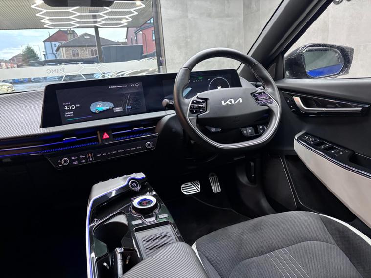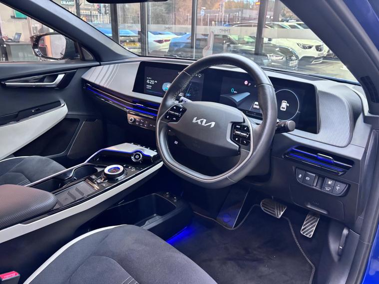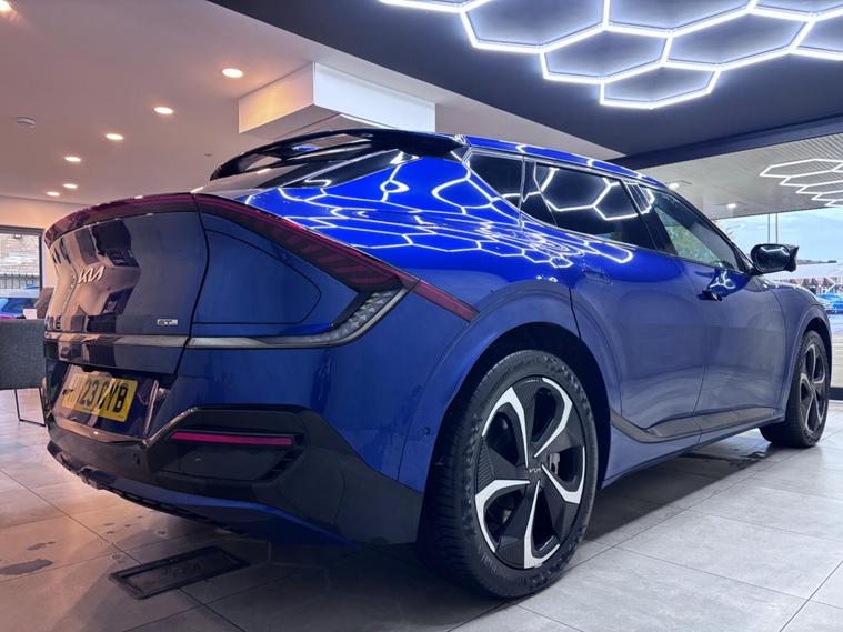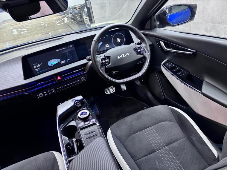 This 2023 Kia EV6 GT Line S presents an exceptional ownership opportunity with a mere 9000 miles on the clock, making it a truly low mileage example for its year. As a fully electric vehicle, it boasts a substantial 77 kWh battery, offering a maximum range of 300 miles when new, and features a capable Four Wheel Drive drivetrain. This particular GT Line S trim comes equipped with a suite of desirable features, including a heated steering wheel and heated front seats for enhanced comfort, a 360 degree around view monitor for effortless parking, and dual LED headlights with adaptive driving beam for superior visibility. Seamless smartphone integration is also a given, with Apple CarPlay and voice control at your fingertips.The Kia EV6 GT Line S is designed to impress, and this model certainly delivers. Its electric powertrain provides brisk acceleration, achieving 0-62mph in just 5.2 seconds, a notable performance advantage over many comparable vehicles. Charging is convenient, with a full charge at home on a 7kW charger taking approximately 12 hours and 30 minutes, while rapid public charging can replenish the battery from empty to 80% in as little as 20 minutes. Furthermore, you'll appreciate the generous boot space, perfect for luggage or shopping. With only one owner since new, this EV6 represents a well maintained and highly specified electric car..