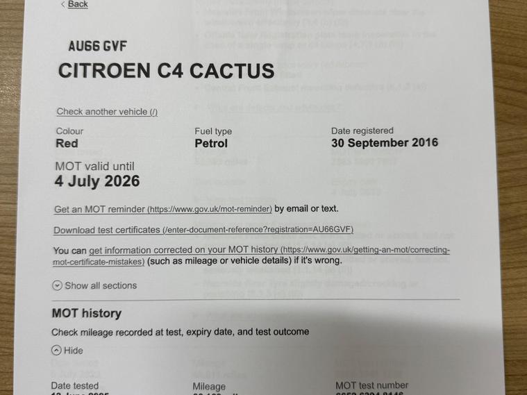 Here at Ezat Car Sales, we have in a stunning red this 2016 Citroen C4 Cactus Flair which boasts a full dealership service history, with its last service completed in November 2025 at 72, 087 miles, and an MOT valid until July 2026, and also 2 keys offering you peace of mind. We have thoroughly checked over this car to ensure that mechanically, this car is reliable. It is also in excellent condition both interior and exterior and it clearly has been looked after, evident from the condition it is in and also the full dealership service history. This Euro 6 compliant 1.2 litre petrol model comes with a 6 month warranty for added security. Its distinctive Stone Grey Airbump panels provide protection against everyday scuffs and scrapes. Inside, you'll find the Citroen Connect Box with Emergency and Assistance System, a reversing camera and rear parking sensors for easier parking, Bluetooth for media streaming, and automatic air conditioning for your comfort.The C4 Cactus Flair stands out with its impressive fuel economy, achieving up to 66 miles per gallon, which is better than many similar vehicles. It also benefits from a low insurance group, making it an economical choice for many drivers. Furthermore, its low CO2 emissions contribute to a more environmentally friendly drive. You'll also appreciate the large boot space, offering plenty of room for shopping or luggage, making this a practical and appealing option.Feel free to give us a call to book a viewing. Deposits are welcomed. This car comes with warranted mileage, full vosa history, comes with all documents, part EXCHANGE welcome, all our cars come fully VALETED, inspected and test drives are welcome, all major credit/debit card and online payments accepted, FINANCE can be arranged, nationwide delivery available. Visit our website for more affordable cars dealer's website