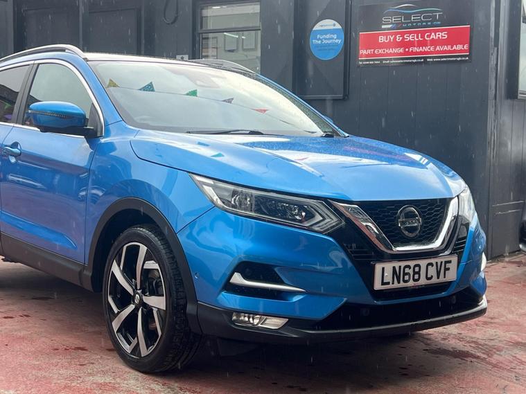 SELECT MOTORS (GB) IS DELIGHTED TO OFFER YOU THIS EYE CATCHING NISSAN QASHQAI 5DR IN BLUE COLOUR COMPLIMENTED WITH 19IN ALLOY WHEELS. THIS VEHICLE HAS A HUGE SPECIFICATION WHICH INCLUDES THE FOLLOWING; SATELLITE NAVIGATION SYSTEM, CAR PLAY FOR IPHONE AND ANDROID AUTOS, 360 DEGREE CAMERA INCLUDING KERB VIEW, BLUETOOTH CONNECTIVITY FOR PHONE AND MEDIA, DAB-FM/AM RADIO, FRONT HEATED SEATS WITH DRIVER SEATS ELECTRICALLY ADJUSTABLE, PANORAMIC GLASS ROOF WITH ELECTRIC POWERED SUN SHADE, DUAL ZONE CLIMATE CONTROL AIR CONDITIONING, CRUISE CONTROL WITH SPEED LIMITER, ELECTRIC PARKING BRAKE, 7IN TOUCHSCREEN COLOUR DISPLAY, BOSE PREMIUM SOUND SYSTEM, INTELLIGENT AUTO HEADLIGHTS, LED HEADLIGHTS WITH LED DAYTIME RUNNING LIGHTS, TYRE PRESSURE WARNING SYSTEM. THIS VEHICLE IS ULEZ EXEMPT. WE ARE OFFERING NATIONWIDE DELIVERY ON ALL VEHICLE (PLEASE GET IN TOUCH DIRECTLY FOR DETAILS). WE CAN ALSO CONDUCT VIRTUAL VIEWINGS AND ACCOMMODATE ANY REQUESTS YOU MAY HAVE. ALL OUR ADVERTISED STOCK IS TEST-DRIVEN, INSPECTED BY OUR MECHANIC TO MAKE SURE OUR CUSTOMERS DRIVE AWAY WITH THE BEST QUALITY CARS. WE CAN PROVIDE A VIDEO WALK AROUND THIS VEHICLE UPON REQUEST., ALL OF OUR VEHICLES ARE SUPPLIED WITH A 3 MONTHS WARRANTY WITH EXTENDED OPTION. 12 MONTHS FREE AA BREAKDOWN COVER. FINANCE AVAILABLE..
