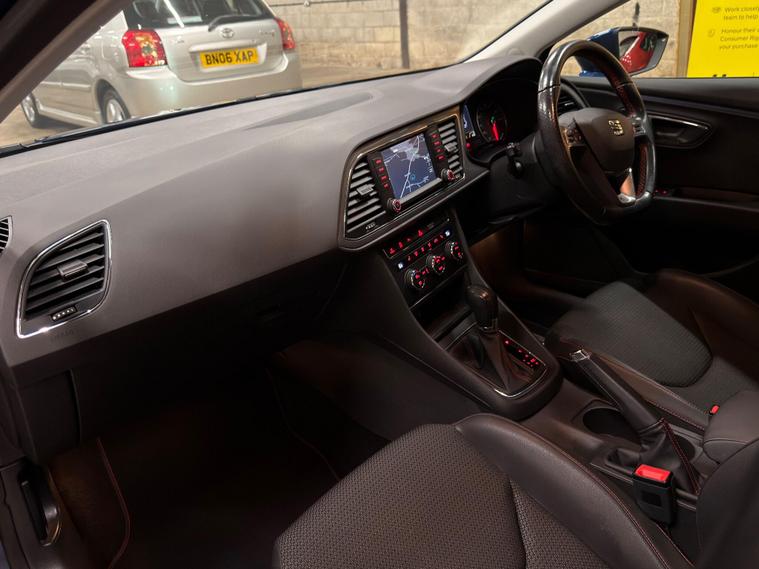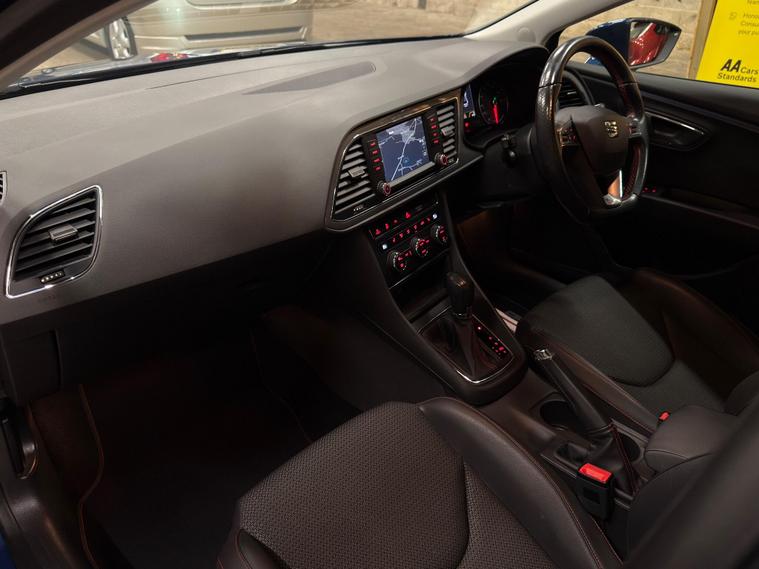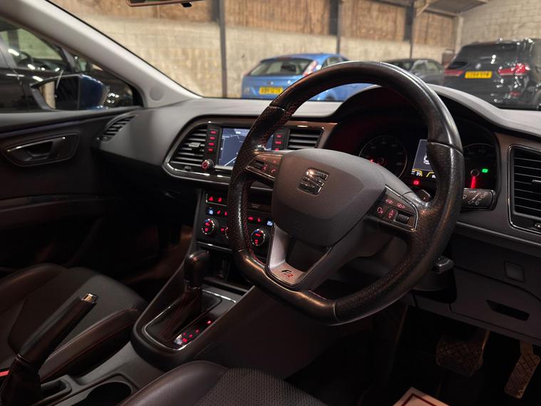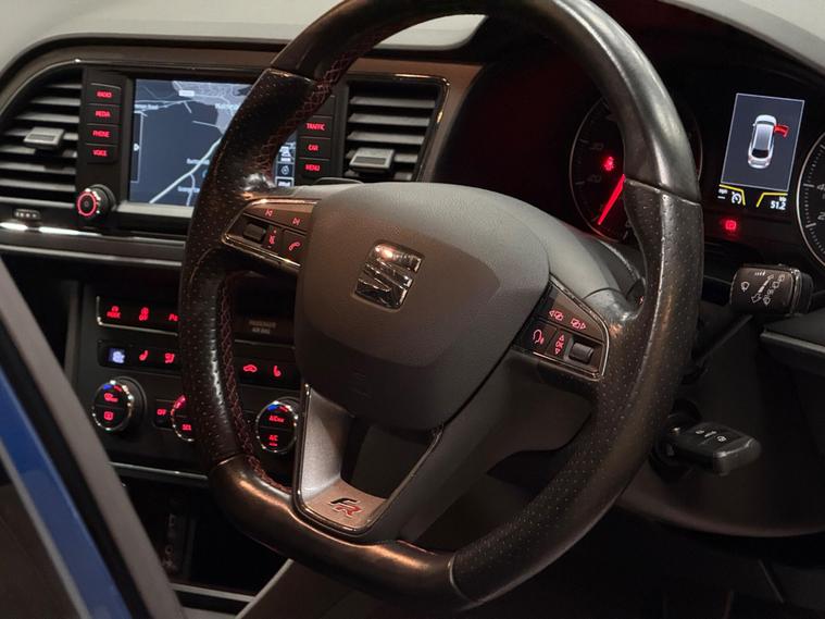 - Steering Wheel - Flat-Bottomed Perforated Leather with Red Stitching and FR Logo
