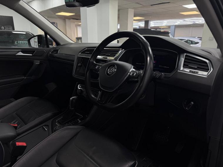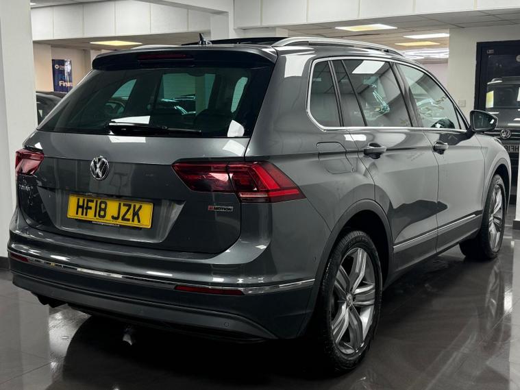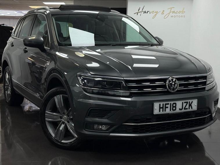This 2018 Volkswagen Tiguan TSI SEL is a superb example, having been owned by just one careful keeper from new. This four wheel drive model boasts a responsive 2.0 litre petrol engine and meets Euro 6 emissions standards. Inside, you'll find the impressive Discover Navigation Pro system, complete with a touch screen, DVD radio, integrated voice activation, Car Net Guide and Inform Plus, and App Connect for seamless smartphone integration including Android Auto and Apple CarPlay. Further enhancing your driving experience are the automatic dusk sensing headlights, a tyre pressure monitoring system, and a panoramic sunroof that can be opened for an airy cabin feel.The Tiguan TSI SEL offers a compelling package, indicated by its impressive acceleration from 0 to 62 miles per hour in just 7.7 seconds, demonstrating its strong performance. Its low insurance group rating means more affordable motoring, while the generous boot space provides ample room for luggage or shopping, making it a practical choice for families and individuals alike. This combination of performance, practicality, and advanced features makes this Tiguan a stand out option..