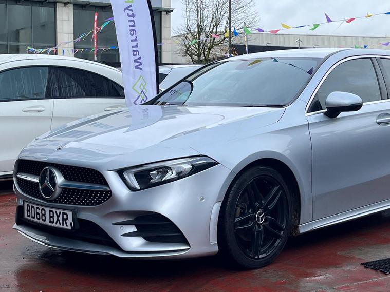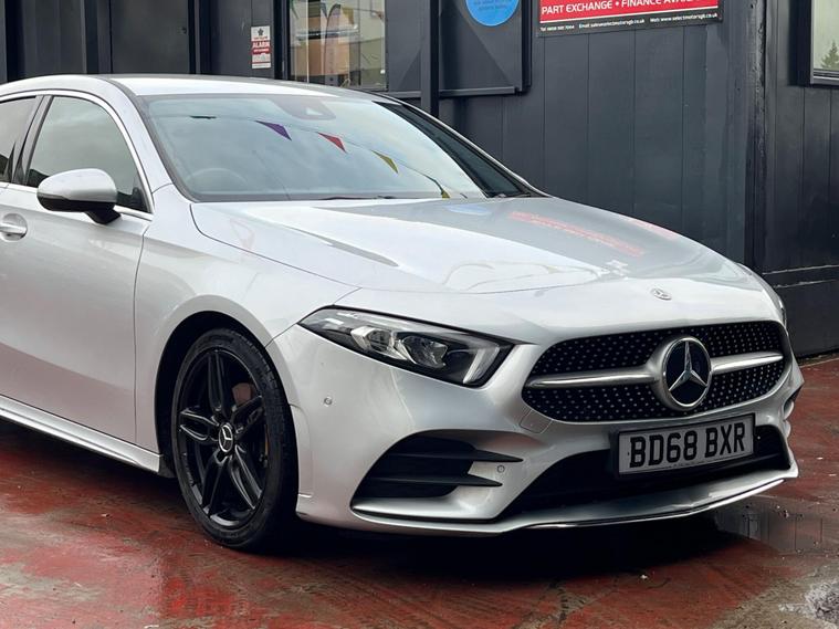 SELECT MOTORS (GB) IS DELIGHTED TO OFFER YOU THIS DAZZLING MERCEDES BENZ A200 AMG LINE (EXECUTIVE) 5DR IN SILVER METALLIC COLOUR AND COMPLEMENTED WITH 18IN AMG 5 TWIN SPOKE DESIGN ALLOY WHEELS. THIS VEHICLE HAS AN IMPRESSIVE SPECIFICATION WHICH INCLUDES THE FOLLOWING; SATELLITE NAVIGATION SYSTEM, CARPLAY FOR IPHONE AND ANDROID AUTO, REVERSING CAMERA WITH 180 DEGREE VIEW, BLUETOOTH CONNECTIVITY FOR PHONE AND MEDIA, DAB-FM/AM RADIO, LANE DEPARTURE WARNING SYSTEM, CRUISE CONTROL WITH LIMITER, FRONT HEATED SEATS, KEYLESS START ENGINE GO WITH START AND STOP PUSH BUTTON, THERMOTRONIC LUXURY AUTOMATIC CLIMATE CONTROL WITH ZONE DISPLAY, LED HIGH PERFORMANCE HEADLAMPS WITH INTEGRATED LED DAYTIME RUNNING LIGHTS, TYRE PRESSURE WARNING SYSTEM. THIS VEHICLE IS ULEZ EXEMPT. WE ARE OFFERING NATIONWIDE DELIVERY ON ALL VEHICLE (PLEASE GET IN TOUCH DIRECTLY FOR DETAILS). WE CAN ALSO CONDUCT VIRTUAL VIEWINGS AND ACCOMMODATE ANY REQUESTS YOU MAY HAVE. ALL OUR ADVERTISED STOCK IS TEST-DRIVEN, INSPECTED BY OUR MECHANIC TO MAKE SURE OUR CUSTOMERS DRIVE AWAY WITH THE BEST QUALITY CARS. WE CAN PROVIDE A VIDEO WALK AROUND THIS VEHICLE UPON REQUEST., ALL OF OUR VEHICLES ARE SUPPLIED WITH A 3 MONTHS WARRANTY WITH EXTENDED OPTION. 12 MONTHS FREE AA BREAKDOWN COVER. FINANCE AVAILABLE..