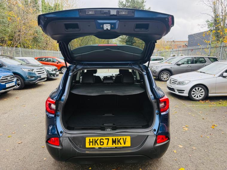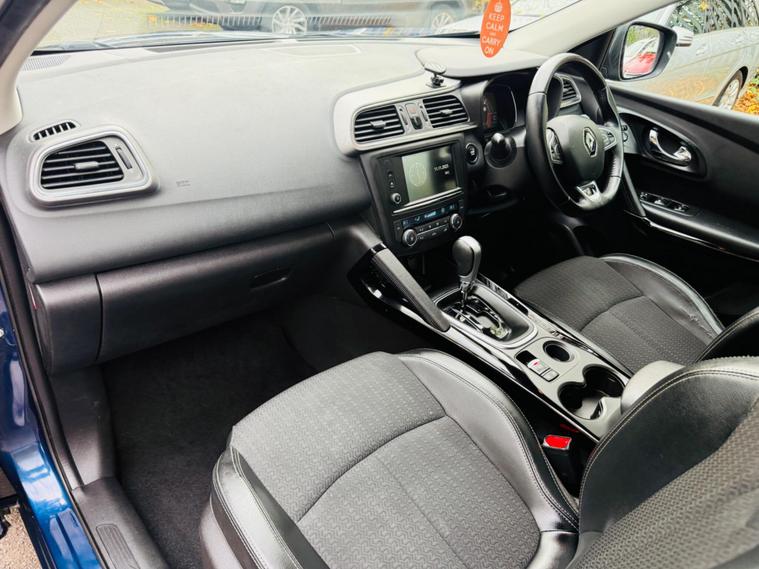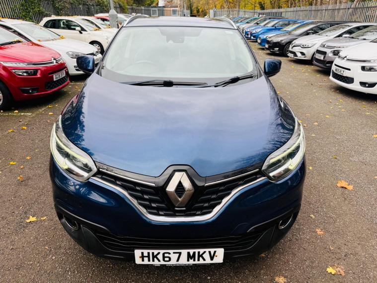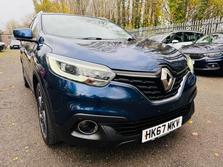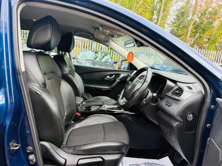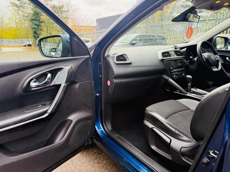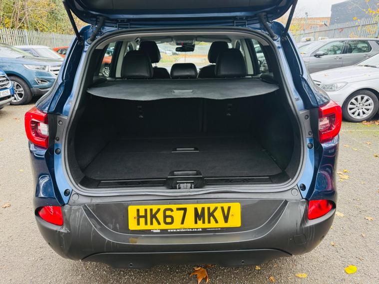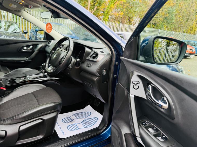 BLUE, SERVICE HISTORY, FINANCE AVAILABLE, NAVIGATION SYSTEM, FRONT AND REAR PARKING SENSORS, HALF LEATHER TRIM, ONLY ONE FORMER KEEPER, PRIVACY GLASS, START/STOP, CRUISE CONTROL, ULEZ COMPLIANTSUPERB DRIVE, VERY ECONOMICAL, ALLOY WHEELS, CLIMATE CONTROL, VERY WELL LOOKED AFTER, VERY CLEAN IN AND OUTThis 2018 Renault Kadjar dCi Dynamique S Nav presents an exceptional ownership proposition with its MOT valid until November 2026 and a clear vehicle history check. This well maintained example boasts a 1.5L Diesel Engine, meeting Euro 6 emission standards, and has covered a modest 65, 410 miles. Inside, you'll find the Dynamique S Nav trim offering a host of convenient features, including an Arkamys 3D Sound DAB Radio with Bluetooth and USB connectivity, front and rear parking sensors for effortless manoeuvring, and a hands free keycard for keyless entry. Enjoy seamless smartphone integration with Apple CarPlay and maintain perfect cabin comfort with automatic dual zone climate control.The highlights of this Renault Kadjar demonstrate its superior value compared to other vehicles in its class. Its impressive fuel economy of 72 mpg means fewer trips to the petrol station, while its low insurance group rating contributes to lower running costs. Furthermore, its low CO2 emissions are beneficial for both the environment and potential tax implications. This Kadjar is a sensible choice for those seeking an economical and well equipped family car..