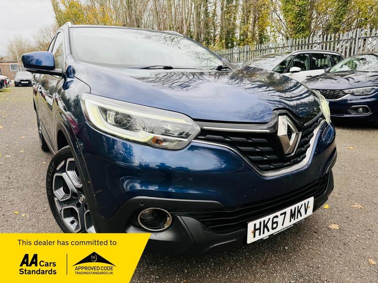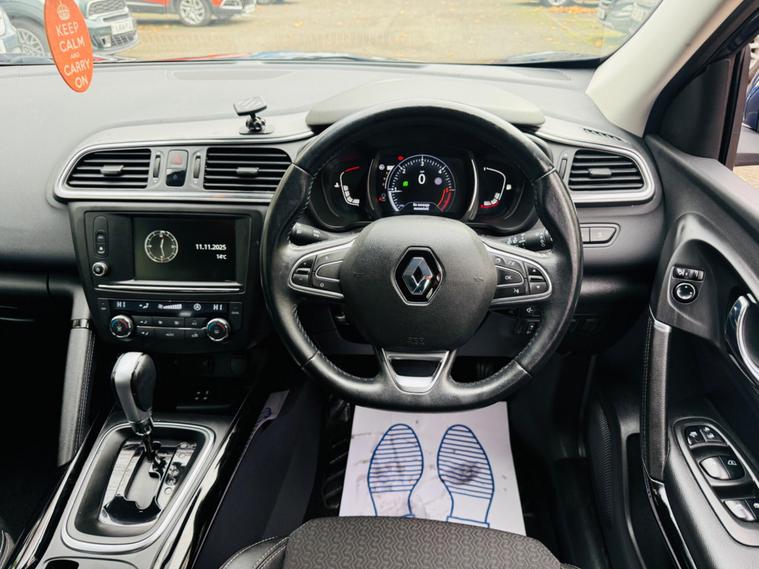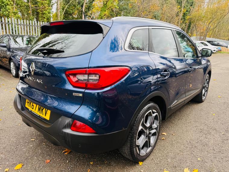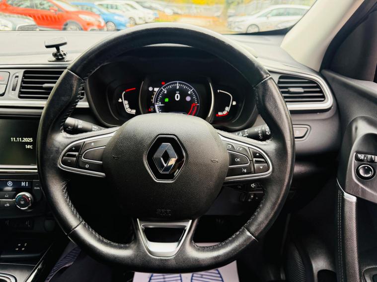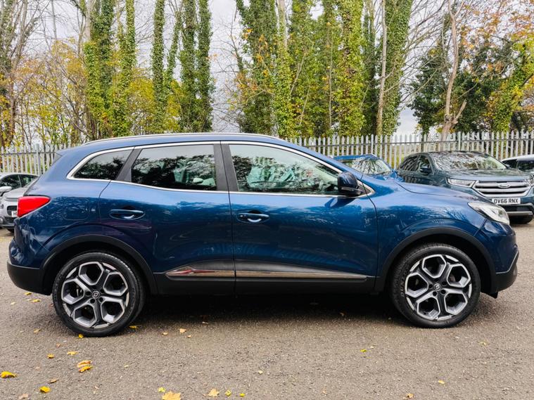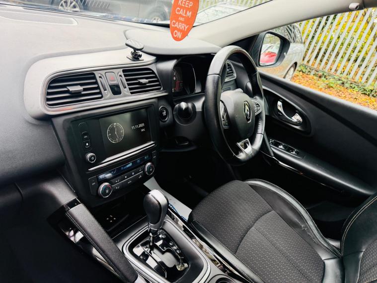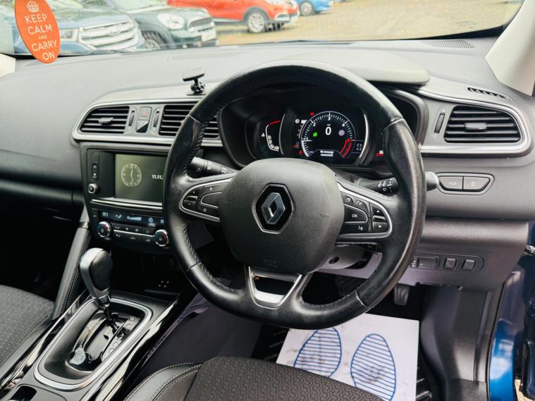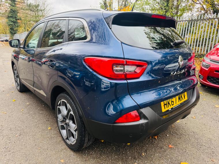 BLUE, SERVICE HISTORY, FINANCE AVAILABLE, NAVIGATION SYSTEM, FRONT AND REAR PARKING SENSORS, HALF LEATHER TRIM, ONLY ONE FORMER KEEPER, PRIVACY GLASS, START/STOP, CRUISE CONTROL, ULEZ COMPLIANTSUPERB DRIVE, VERY ECONOMICAL, ALLOY WHEELS, CLIMATE CONTROL, VERY WELL LOOKED AFTER, VERY CLEAN IN AND OUTThis 2018 Renault Kadjar dCi Dynamique S Nav presents an exceptional ownership proposition with its MOT valid until November 2026 and a clear vehicle history check. This well maintained example boasts a 1.5L Diesel Engine, meeting Euro 6 emission standards, and has covered a modest 65, 410 miles. Inside, you'll find the Dynamique S Nav trim offering a host of convenient features, including an Arkamys 3D Sound DAB Radio with Bluetooth and USB connectivity, front and rear parking sensors for effortless manoeuvring, and a hands free keycard for keyless entry. Enjoy seamless smartphone integration with Apple CarPlay and maintain perfect cabin comfort with automatic dual zone climate control.The highlights of this Renault Kadjar demonstrate its superior value compared to other vehicles in its class. Its impressive fuel economy of 72 mpg means fewer trips to the petrol station, while its low insurance group rating contributes to lower running costs. Furthermore, its low CO2 emissions are beneficial for both the environment and potential tax implications. This Kadjar is a sensible choice for those seeking an economical and well equipped family car..