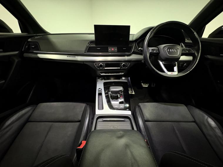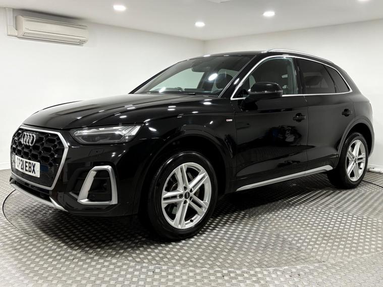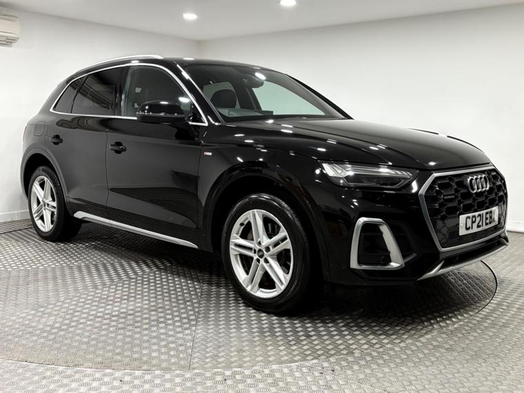 This 2021 Audi Q5 TFSI S line finished in Mythos Black is a superb example, having been owned by only one person since new. This premium SUV boasts a powerful 2.0 litre petrol engine paired with Audi's renowned Four wheel Drive system, ensuring confident handling in all conditions, features include heated front seats, electric folding mirrors, automatic tailgate, Audi drive select, virtual cockpit, keyless start and many more. A service and full 12 months MOT provided at purchase offering peace of mind.For more information please get in touch. 01522972873.