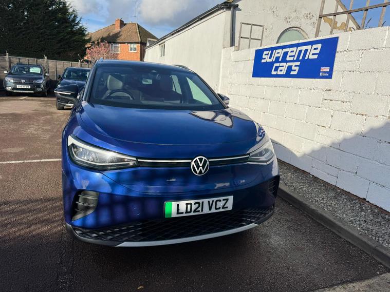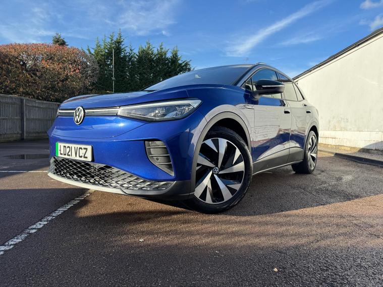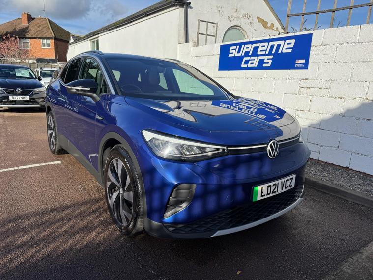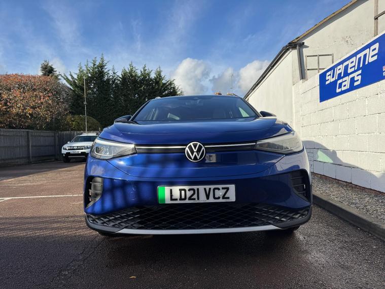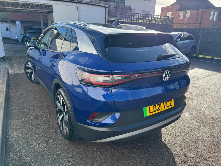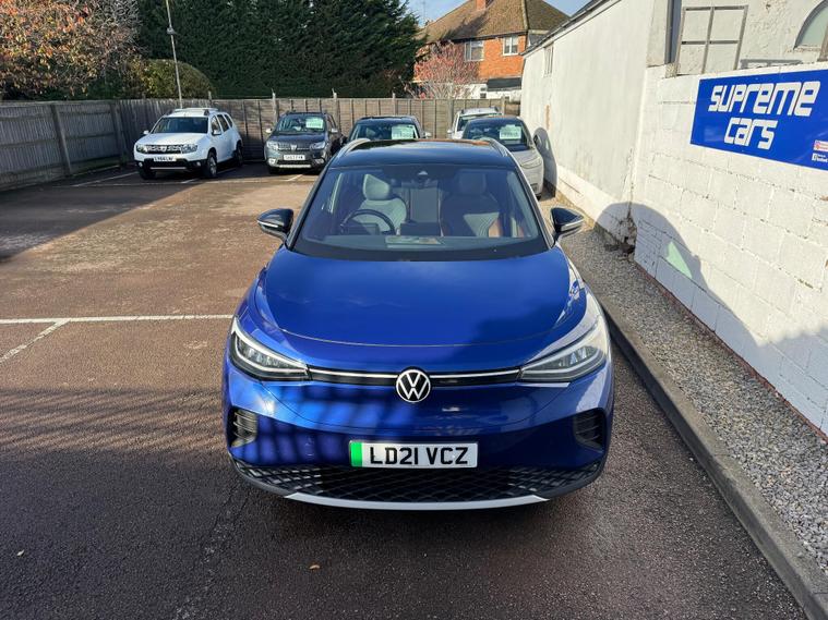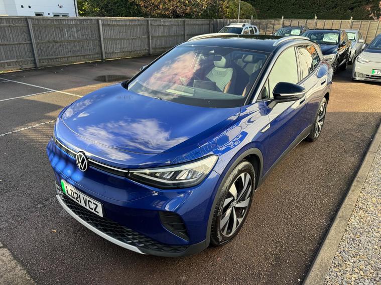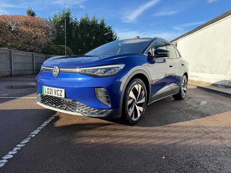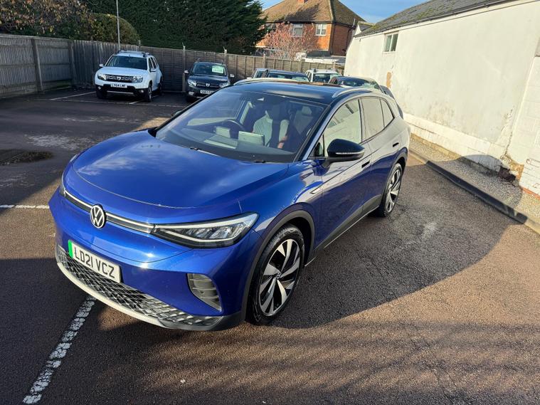 This 2021 Volkswagen ID.4 Pro Performance 1ST Edition offers an impressive electric driving experience with a substantial 82 kWh battery, providing a maximum range of 310 miles when new. This model benefits from a 1ST Edition trim, featuring intelligent LED headlights with automatic switching and distinctive LED tail lights. Convenience is enhanced with a keyless opening and start system, alongside a helpful rear view camera for easier parking. For comfortable journeys, it includes smart adaptive cruise control and a rain sensor, while the leather multifunction steering wheel is heated for added comfort during colder weather.The ID.4 Pro Performance 1ST Edition stands out with its generous boot space, offering ample room for your luggage and shopping. Its electric powertrain ensures a smooth and quiet drive, with a full charge at home on a 7kW charger taking approximately 12 hours and 40 minutes. For longer trips, rapid charging is also an option, capable of reaching 80% charge from empty in just 40 minutes at a compatible public charging station. These features collectively highlight how this Volkswagen ID.4 provides a practical and advanced electric vehicle solution.NEW CONTINENTAL REAR EV TYRES. RECENT MODULE REPLACEMENT AT VW UNDER WARRANTYSERVICE JUST DONE AT VW LISTERS.
