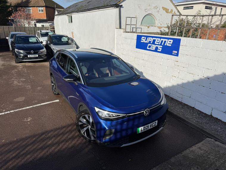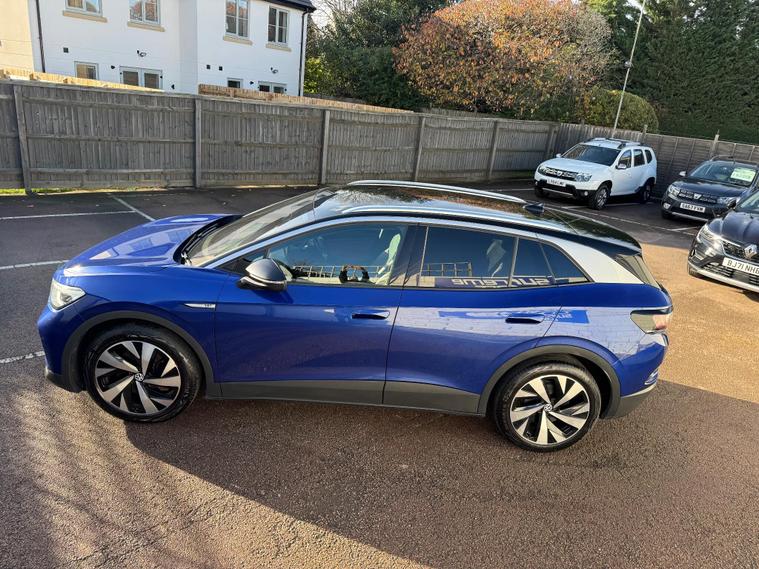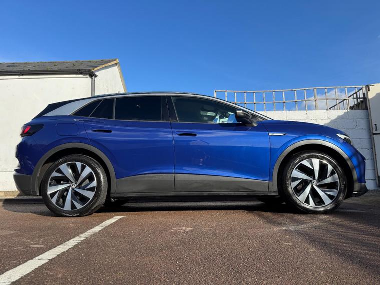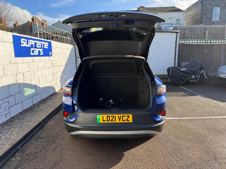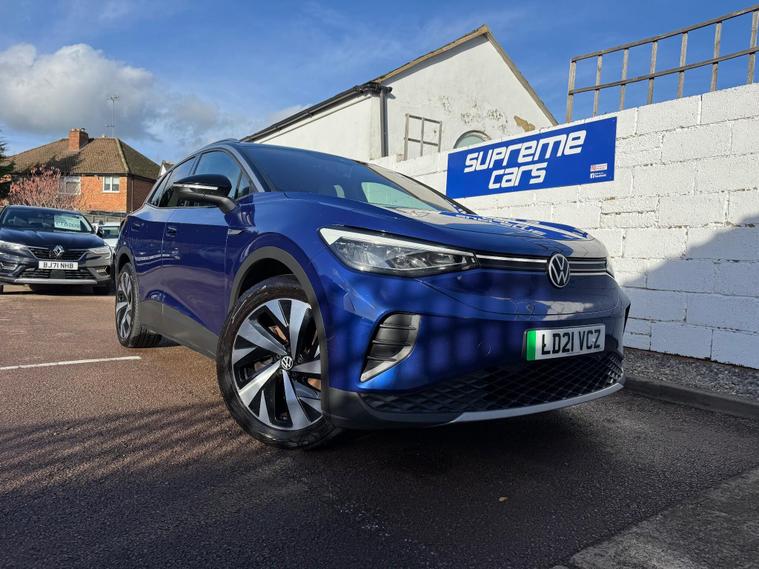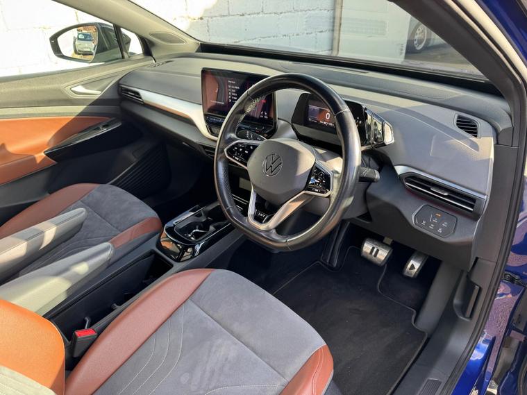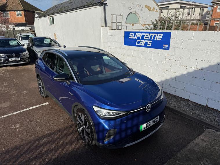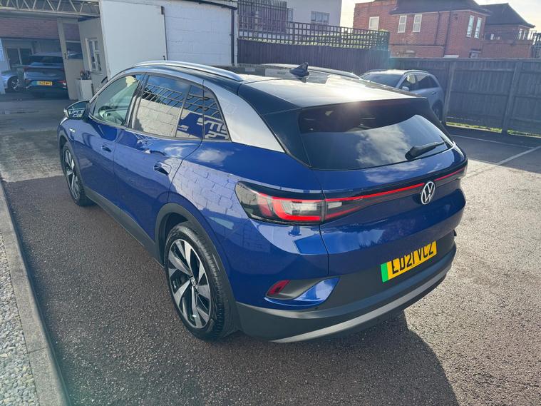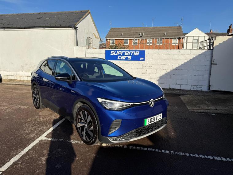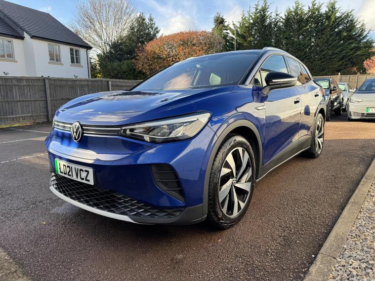 This 2021 Volkswagen ID.4 Pro Performance 1ST Edition offers an impressive electric driving experience with a substantial 82 kWh battery, providing a maximum range of 310 miles when new. This model benefits from a 1ST Edition trim, featuring intelligent LED headlights with automatic switching and distinctive LED tail lights. Convenience is enhanced with a keyless opening and start system, alongside a helpful rear view camera for easier parking. For comfortable journeys, it includes smart adaptive cruise control and a rain sensor, while the leather multifunction steering wheel is heated for added comfort during colder weather.The ID.4 Pro Performance 1ST Edition stands out with its generous boot space, offering ample room for your luggage and shopping. Its electric powertrain ensures a smooth and quiet drive, with a full charge at home on a 7kW charger taking approximately 12 hours and 40 minutes. For longer trips, rapid charging is also an option, capable of reaching 80% charge from empty in just 40 minutes at a compatible public charging station. These features collectively highlight how this Volkswagen ID.4 provides a practical and advanced electric vehicle solution.NEW CONTINENTAL REAR EV TYRES. RECENT MODULE REPLACEMENT AT VW UNDER WARRANTYSERVICE JUST DONE AT VW LISTERS.