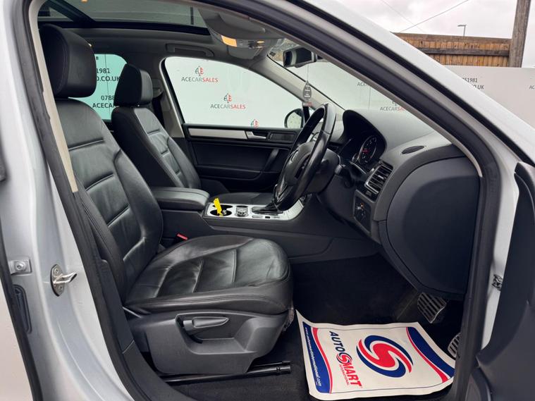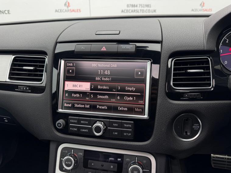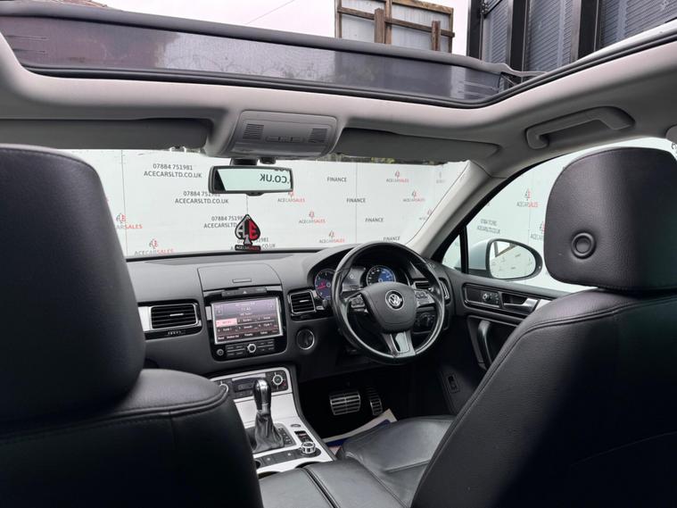 FINANCE & PCP AVAILABLE, COMPLEMENTARY WARRANTY INCLUDED, GOOD CONDITION, WE TAKE PART EXCHANGE! Volkswagen Touareg 3.0 TDI V6 BlueMotion Tech R-Line Tiptronic 4WD Euro 5 (s/s) 5dr. HPI Clear, Full VW Deealership Service History, 7 Months MOT, 2 Owners, 2 Keys, Panoramic Glass Sunroof Sliding/Tilting, Keyless Entry, Keyless Start, Cruise Control, Driver Alert System, Sports Suspension, Paddle Shifts, Sports Gear Mode With Manual Shifting, On Road/Off Road Driving Modes, 4 Wheel Drive, Parking Sensors Front And Rear, Driver Alert System, Differential Lock - Electronic, Power Assisted Steering - Speed Sensitive, Electronic Parking Brake with Auto Hold Function, Hill Descent Assist, Hill Start Assist, Traction Control System, Anti Slip Regulation, Electronic Stability Programme, Electronic Brake Pressure Distribution, Anti-Lock Braking System, Automatic Headlight Control, Headlights - Bi-Xenon, Headlights - Dusk Sensor with Coming-Leaving Home Function, Front Fog Lights with Cornering Lights, Footwell Illumination - Front and Rear, Electric Opening/Closing Tailgate, Electric Windows, Electric Mirrors, Folding Mirrors, Heated Front Seats, Heated Steering Wheel, Automatic Dual Zone Climate Control, Air Conditioning, Front And Rear Screen Demister, Colour Touchscreen Interface, Drivers Information Cluster, Navigation, Traffic Information, Bluetooth, Radio, DAB, CD, Telephone Connection, Voice Control, Multifunctional Steering Wheel, Full Leather Seats In Black, Gloss Black And Aluminium Design Interior Trims, R Line Design Door Trims, R-Line Styling Pack, Exterior Badging, Roof Rails, Aluminium Exterior Trims, Privacy Glass, 20inch Alloy Wheels.ALL VEHICLES ARE FULLY INSPECTED PRIOR TO SALE. Feel free to enquire about our competitive Financial packages. We can assist you in securing finance for your New car with ease- regardless of your credit status/history. All of our cars are regularly price checked to be amongst the most competitive on the market! We include a COMPLEMENTARY WARRANTY on all our vehicles. Be our next happy customer today! dealer's website