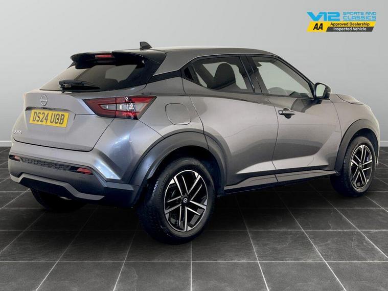 This 2024 Nissan Juke DIG T N Connecta is a superb example, having had only one owner since new. This stylish compact SUV features a responsive 1.0 litre petrol engine, meeting Euro 6 emission standards. Its N Connecta trim level ensures a well equipped driving experience, with the convenience of Intelligent Key and Start Push Button offering walk away lock and approach unlock functions, alongside keyless entry. For ease of parking, it includes a rear view camera and rear parking sensors, providing valuable parking assistance. Stay connected and entertained on every journey with seamless integration of Apple CarPlay and Google Android Auto, all accessible through the car's Bluetooth connectivity which also offers both USB A and C ports. This Juke boasts an impressive highlight fuel economy of 48 mpg, demonstrating its efficiency compared to other vehicles in its class. Furthermore, its low CO2 emissions contribute to a more environmentally conscious drive. For peace of mind this vehicle has only had 1 registered owner and has completed a multi point AA dealer's website finance is also available.We are open 7 days a week and have more than 1500 cars to choose from.All our Euro 4 Petrol and Euro 6 Diesel vehicles meet the ULEZ standard.Vehicle specification can be found below. From time to time vehicles have manufacturer recalls notified. Please read our recall policy on our website for further information..