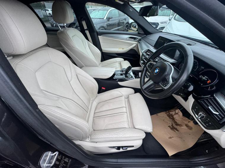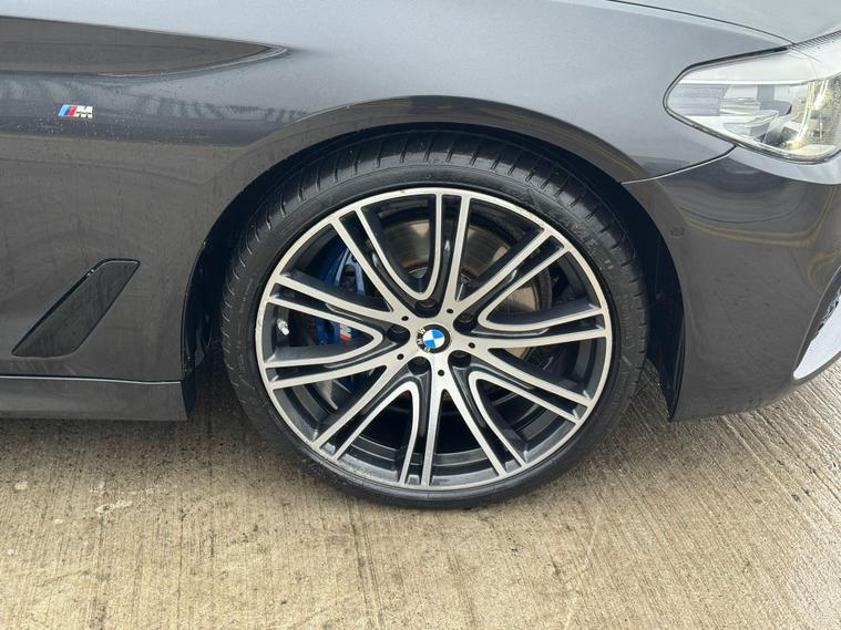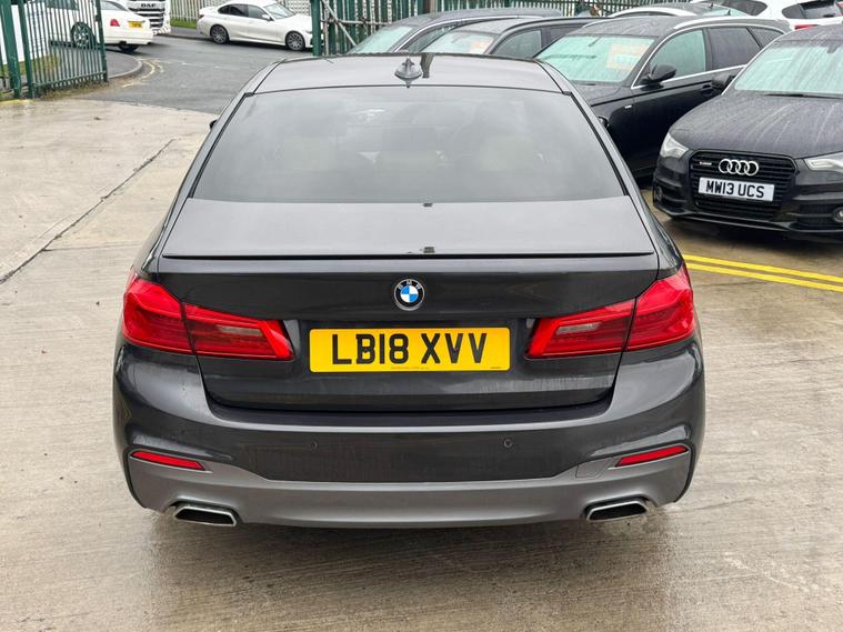 This 2018 BMW 5 Series 530d M Sport is a remarkable example, having had only two owners from new. It boasts a powerful 3.0L Diesel engine, meeting Euro 6 emission standards, and is presented in the desirable M Sport trim. Inside, you'll find a premium Harman Kardon loudspeaker system for an exceptional audio experience, alongside automatic climate control to ensure comfort for all occupants. Navigating tight spaces is made effortless with front and rear Park Distance Control, further enhanced by parking assistance sensors. The vehicle also features a rain sensor that automatically activates the headlights, providing added convenience and safety.This M Sport model is equipped with striking 20in BMW Individual Light V-Spoke Bi-Colour alloy wheels, setting it apart from other vehicles. Its impressive acceleration, reaching 0-62mph in just 5.7 seconds, demonstrates its dynamic performance. Furthermore, this 5 Series offers substantial boot space, making it a practical choice for everyday needs and longer journeys. The low insurance group rating also indicates that running costs are more favourable compared to similar vehicles, adding to its overall appeal..