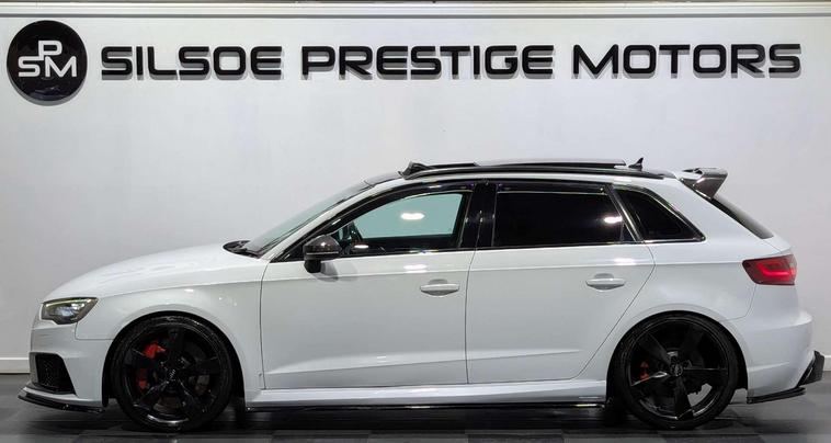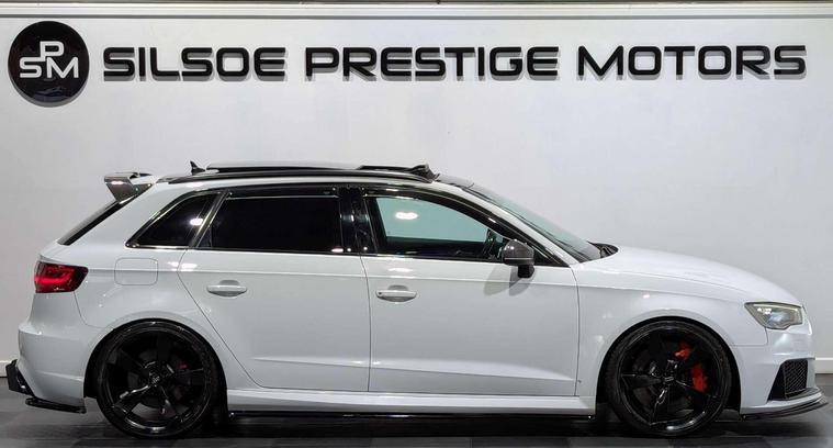 Introducing the Audi A3 2.5 RS 3 Sportback Nav Quattro Semi-Auto 4WD 5dr, a true masterpiece on wheels with a mere 61791 miles under its belt. This stunning vehicle is finished in a sleek White exterior that exudes sophistication and style.Equipped with a range of luxurious extras, this Audi A3 is sure to impress even the most discerning driver. Enjoy the crystal-clear sound of the Bang and Olufsen Sound System, cruise effortlessly with Cruise Control, and turn heads with the 19in Alloy Wheels in a striking 5-Arm Rotor Design Diamond Cut - Titanium Matt Finish.Stand out from the crowd with the Black Roof Rails, Red Brake Calipers with RS3 Logo, and High-Gloss Black Styling Package. The Panoramic Glass Sunroof and Privacy Glass add an extra touch of elegance to this already impressive vehicle.Step inside and experience true comfort with the Fine Nappa Leather RS Super Sports Seats in Black with Crescendo Red Stitching and RS3 Logo. The Electrically Adjustable 4-Way Lumbar Support ensures a custom fit for every drive, while the Auto-Dimming Rear-View Mirror adds convenience to your journey.With features like Audi Magnetic Ride, Pre-Sense Basic, and Electrically Adjustable-Folding-Auto-Dimming Door Mirrors, the Audi A3 is designed to provide a seamless driving experience like no other.Don't miss your chance to own this exceptional Audi A3 - contact us today to schedule a test drive and experience luxury on the road like never before.Key featuresSTAGE 2 REMAPGHOST IMMOBILISERPANROOFBANG & OLUFSENSUPER SPORT SEATSRED CALIPERSFRONT & REAR PARKING SENSORSDAB RADIOSATNAVHEATED SEATS**WE CHARGE AN ADMIN ON ALL OUR VEHICLES***Here at Silsoe Prestige Motors, we're proud to be rated 4.8 stars on Google. We are regulated by the FCA and offer flexible finance options. Our finance team works with a variety of lenders and sub-lenders to secure the best possible deal for you, subject to terms and conditions. For more information on finance options, please contact our sales team at 01234532657 or via WhatsApp at 01234532657 or 01234532657.We also offer additional warranty packages up to 3 years at competitive prices.Other services include:Competitive prices on part-exchangeNationwide delivery optionsArranged video calls for car viewingsCeramic paint application on request at fair pricesInstallation of ghost immobilisers and trackers for enhanced security and reduced insurance premiumsDriveaway insurance available for up to 5 days on a fair price.For further details, please reach out to us at 01234532657, call 01234532657, or visit us in Silsoe, Bedfordshire MK45 4QR. Use ''Silsoe Prestige Motors'' in your maps for accurate directions. We are conveniently accessible from the A1 and the M1.Our opening hours are:Monday to Saturday: 9:30 AM - 6:00 PMSunday: 11:00 AM - 4:00 PMAll dealer facilities are available, including finance and warranty options. Vehicle specifications are provided by a third party, so please confirm details with our sales team. All our cars are HPI clear, and we also buy cars at trade prices.For our full range of vehicles, visit Silsoe Prestige Motors. For any inquiries, call, text, or WhatsApp our sales team on 01234532657.Please note that data is pulled from a third-party source, so please confirm specifications with one of our sales team member.Please visit dealer's website for our full range of stock..