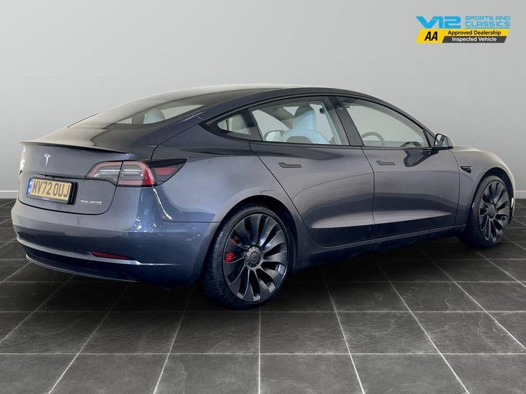 This 2022 Tesla Model 3 Performance is a superb example, having had only one owner since new. This electric saloon boasts a powerful Four Wheel Drive system and a substantial 82 kWh battery, offering an impressive maximum range of 340 miles when fully charged. Recharging at home on a 7kW charger will take approximately 12 hours, while rapid public charging can take you from empty to 80% in as little as 26 minutes. The Model 3 Performance comes equipped with advanced LED headlights, keyless entry and remote control via a dedicated app, and a convenient 2 zone climate control system. For your convenience, it also features inductive charging mats for two smartphones and front parking sensors to assist with manoeuvring.For peace of mind this vehicle has only had 1 registered owner and has completed a multi point AA inspection. Vehicle specification can be found below. From time to time vehicles have manufacturer recalls notified. Please read our recall policy on our website for further information. Please be advised that the advertised electric vehicle (EV) listings may experience battery degradation over time, resulting in reduced performance and range compared to the original specifications. Factors such as usage patterns, environmental conditions, and charging practices can contribute to this degradation. While we strive to provide accurate information, the actual battery health and performance of each EV may vary. Customers are encouraged to conduct thorough research and consider the potential impact of battery degradation before making a purchase decision. We recommend consulting with a qualified technician or conducting a battery health inspection for further assessment. This vehicle comes with an AVILOO Battery Health Certificate - the global standard for EV battery testing. Full independent analysis confirms excellent battery condition with detailed State of Health assessment, cell-level checks, and accurate range data. Certificate included with purchase for your complete peace of mind and future resale value..