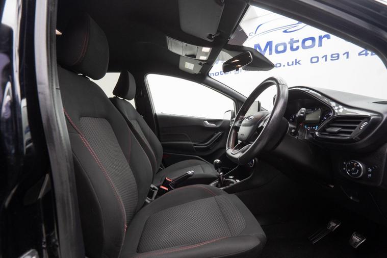 53, 502 miles. This Ford Fiesta ST Line offers a full 12 months MOT for your peace of mind. This popular hatchback is equipped with a 1.0L petrol engine and meets Euro 6 emissions standards, contributing to its low CO2 emissions. The ST Line trim enhances its sporty appeal, and this particular model includes the convenient City Pack, which features rear parking sensors and a rear view camera to assist with manoeuvring. You'll also benefit from full LED headlamps for improved visibility and a Ford Navigation System with Ford SYNC 3, offering seamless integration with Apple CarPlay and Android Auto, alongside Bluetooth connectivity and a FordPass Connect embedded modem. Inside, the adjustable boot load floor provides practical versatility for carrying your belongings.Experience responsive performance with this Ford Fiesta, capable of accelerating from 0 to 62mph in just 10.0 seconds. These highlights demonstrate how this vehicle stands out from others in its class, offering a compelling combination of efficiency, technology, and driving enjoyment. Its Euro 6 compliant engine and low CO2 emissions make it an environmentally conscious choice, while the advanced infotainment system and parking aids ensure every journey is both connected and stress free.Please call our experienced sales team on 01914800597 for any additional specification queries, an in depth appraisal/ Video call or maybe we can help fund your new car. All our vehicles are prepared to the highest standards by our expert technicians in our fully equipped preparation centre as we're an AA approved dealer. Every car must go through a strict and thorough inspection, Items that require attention, mechanically or cosmetically are addressed prior to delivery. We offer a wide range of Finance and Warranty packages as well as fantastic trade rates for allow wheel refurbs/colour changes, window tinting and much more. Vehicles are supplied with pre delivery service, 12 months MOT, 12 Months AA breakdown cover and 6 months Auto Protect warranty that can be extended up to 24 month. All vehicles are HPI clear..