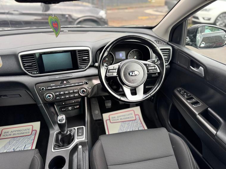 HERE WE HAVE ON SALE THE SUPERB KIA SPORTAGE 1.6 GDI 2 EURO 6 FINISHED IN METALLIC dealer's website WITH SATELLITE NAVIGATION WITH 7 INCH TOUCHSCREEN, BLUETOOTH, CRUISE CONTROL WITH SPEED LIMITER, HEATED FRONT AND OUTER REAR SEATS, REAR PARKING SENSORS WITH REVERSE CAMERA, MULTIFUNCTIONAL STEERING WHEEL, ELECTRIC WINDOWS, ELECTRIC AND HEATED MIRRORS, HILL START ASSIST, LANE KEEP ASSIST SYSTEM, TYRE PRESSURE MONITORING SYSTEM, DAB DIGITAL RADIO, USB AND AUX INPUT, REMTOTE CENTRAL LOCKING, X2 KEYS................THIS VEHICLE COMES WITH GREAT SERVICE HISTORY WITH SERVICES AT 11604 MILES, 22297 MILES, 32427 MILES, 41588 MILES AND WILL BE SERVICED AT POINT OF SALE TO BRING IT UP TO DATE ..................THIS VEHICLE PRESENTS IN EXCELLENT CONDITION THROUGHOUT AND DRIVES LIKEWISE...................VIEWING ESSENTIAL....................FINANCE AVAILABLE ON REQUEST..