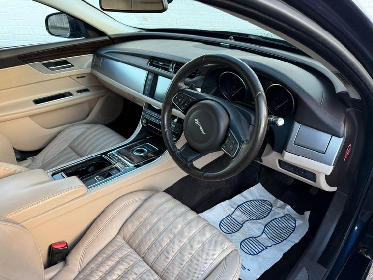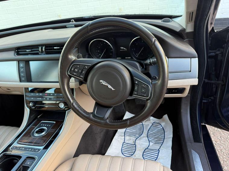 This 2015 Jaguar XF d Portfolio offers an exceptional ownership experience, boasting a full service history and a single previous owner. This sophisticated saloon features a powerful yet efficient 2.0L Diesel engine, meeting Euro 6 emissions standards. Inside, you'll find the comfort of driver memory seats and the convenience of keyless entry with the Jaguar Smart Key System. Parking is made easier with front and rear parking assistance, complemented by a rear view camera. The Bi Function HID Xenon headlights with LED daytime running lights ensure excellent visibility.The Jaguar XF d Portfolio is designed to impress with its impressive fuel economy, achieving a remarkable 66 mpg, which is significantly better than many other vehicles in its class. Its low CO2 emissions also contribute to its appeal, making it a more environmentally conscious choice. Furthermore, this model benefits from a low insurance group, potentially saving you money on running costs. You'll also appreciate the generous boot space, offering ample room for luggage or shopping, making it a practical and stylish option for everyday driving..