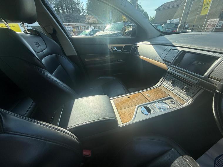 Allwood Autos are delighted to be able to bring to market this rare with lovely service record Jaguar XF 5.0 V8 XFR edition. With lovely low miles this 5.0 supercharge drives like an absolute dream. With Jaguar main dealer service history through to 44, 00 miles with 5 services then followed by regular specialist servicing thereafter we hold a total of 10 scheduled services with the last one having been recently completed at 53594 miles. The current MOT runs right through till 11/06/2026 and for further peace of mind it is free from any advisories. Fully HPI clear free from accidents and finance with confirmation of the cars low miles, the last owner had the car for over 5 years, producing 510bhp with a 0-60 sprint time of 4.7 seconds this really is a wolf in sheep's clothing. As you would expect from such a car the factory specification gave you some lovely options of which highlights included full extended black leather with R embossed seats heated and cooled. Wide screen navigation touch enabled, reverse camera system, USB and AUX inputs, Suede headlining, Bowers and Wilkins upgraded HiFi System and much much more.We offer our clients full dealership facilities, part exchange valuations with up to the minute market pricing. FCA regulated with access to some of the best funding options in the market (subject to status and vehicle choice). Our Staff are fully SAF approved. A portfolio of extended warranty options are on offer to suit your needs. Looking for an XFR with wonderful spec and great colour combination with full history recent MOT and service? Our dealerships are fully AA Approved via trading standards and all vehicles come with free AA breakdown cover. We operate via appointments for viewings and test drives in order to give you the best possible service simply contact the friendly team today on 01992692619 or what's app and text services on 01992692619.