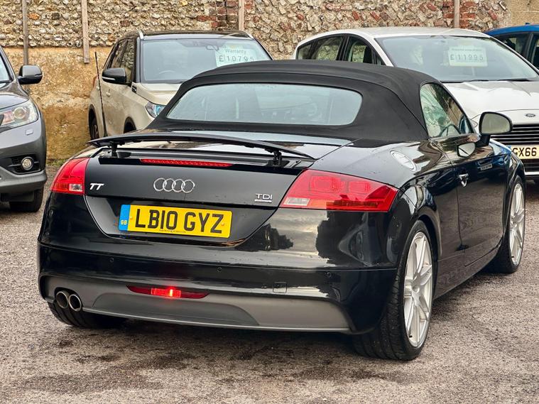 USED CAR: Pavillion Car Sales is pleased to offer an excellent example of a Audi TT 4WD Quattro in the S-Line Special Edition!This sleek black convertible is well equipped with lots of great features including Bluetooth, Heated Seats, Full Leather Seats, Electric Convertible Roof, Electric Spoiler, 19-Inch Alloys, Bose Speakers, Auto Lights, Auto Climate Control, and more. The 2.0 TDI Quattro engine delivers an impressive 50.4 MPG, boasting 168 horsepower. With as little as £215 annual road tax, this practical and economical choice invites you for a test drive. THE HISTORY:Well Maintained Having only 2 FORMER KEEPERS, this used car has been well maintained inside and out. A thorough mechanical inspection has been carried out and Part service history is provided. ( 12 Total Services) 1st at(15284) 2nd at(20831) 3rd at(25210) 4th at(29103) 5th at(38669) 6th at(57126) 7th at(65861) 8th at(69538) 9th at(77016) 10th at(85281) 11th at(91423) 12th at current miles new service with cambelt & Waterpump. WHAT'S INCLUDED: Benefits & Peace of MindExperience peace of mind with a Long MOT Till 09/11/2026, 12 months complimentary AA breakdown cover, and a 3-month warranty extendable to a nationwide 36 months with the AA. 5-day Drive away cover is available, and we can assist with road tax. 2 KEYS.ABOUT US: The Family Run & Award-Winning Used Car DealershipWelcome to Pavillion Car Sales – a multi-award-winning, family-run car dealership with over a decade of expertise we have used cars for sale in Brighton & Crawley. As an AA-authorized & Trading Standards-approved used car dealership, we're committed to offering high-quality second-hand vehicles for sale at competitive prices. Each car undergoes a meticulous selection process to meet our high standards, finding you a perfect balance between quality, reliability, and value. Beyond our extensive selection of used cars for sale, our services ensure a seamless and stress-free experience, including a thorough multi-point inspection, history checks, a pressure-free family-like environment.PAVILION CAR SALES - Brighton.