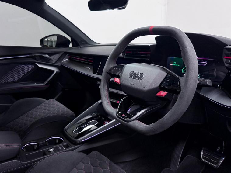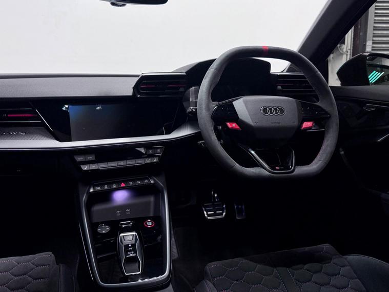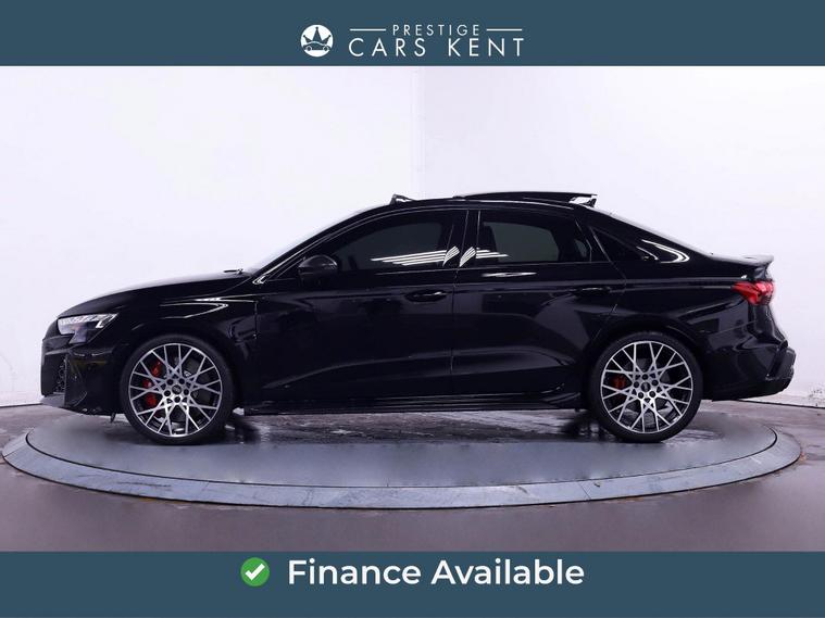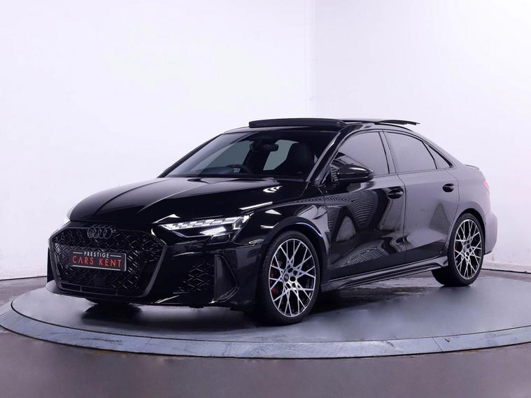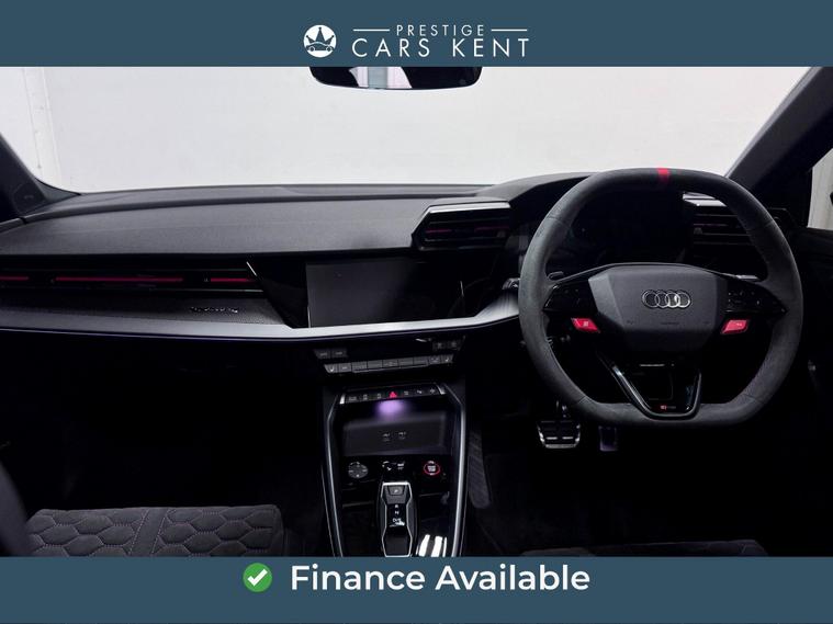 ?Audi RS3 2.5 TFSI Carbon Vorsprung Quattro Saloon?Meet the RS3 Vorsprung Carbon—Audi’s compact performance monster wrapped in premium tech and aggressive styling. Powered by the iconic 2.5 TFSI five-cylinder engine, this saloon delivers electrifying acceleration and a soundtrack that sends shivers down your spine. Quattro all-wheel drive keeps everything planted, while Vorsprung luxuries elevate every drive with next-level comfort and safety tech. Carbon detailing, RS-specific design touches, and a seriously athletic stance make it look every bit as wild as it feels behind the wheel. Whether you're carving through B-roads or cruising in style, this RS3 is engineered to thrill.✨ Some features we love:? Technology Pack Pro – Adds enhanced navigation, improved connectivity and advanced digital functions for a smarter, more intuitive in-car tech experience wherever you drive.? RS Design Pack Plus – Red – Injects motorsport flair with RS-themed accents, red detailing and performance-inspired finishes across key interior elements.? Black Leather RS Bucket Seats (Red Stitching) – Deeply contoured, lightweight and supportive seats that enhance stability, comfort and road feel under dynamic driving.? Adaptive Suspension with Audi Drive Select – Tailors ride comfort and handling sharpness in real time, letting you switch from relaxed cruising to focused performance instantly.⚫ RS Exterior Features in Carbon – Carbon-fibre exterior accents reduce weight, sharpen aerodynamics and give the RS3 an unmistakably aggressive motorsport aesthetic.?️ Parking Assist with Parking System Plus – Provides intelligent steering assistance and all-around sensors to help you manoeuvre confidently into tight or complex parking spaces.? Why Buy from Prestige Cars Kent?✅ 90-Day Guarantee✅ 175-Point Quality Inspection? Nationwide Delivery Available? Call Now: 01689242905? Prefer email? Submit your enquiry today and we’ll be in touch.⭐ Admin fee applies. Please confirm all specifications, as they are autogenerated ⭐.