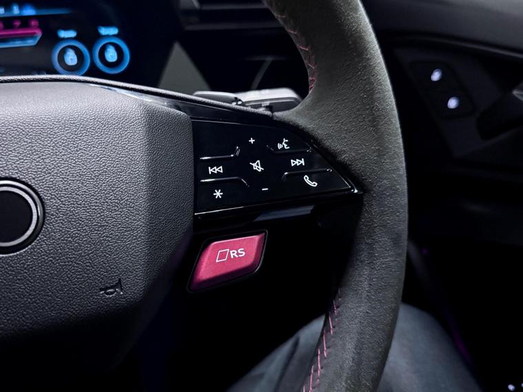 - Steering Wheel - Flat Top and Bottomed 3-Spoke Black Leather Multifunction with Shift Paddles in Vanadium Look - Rhombus RS Logo