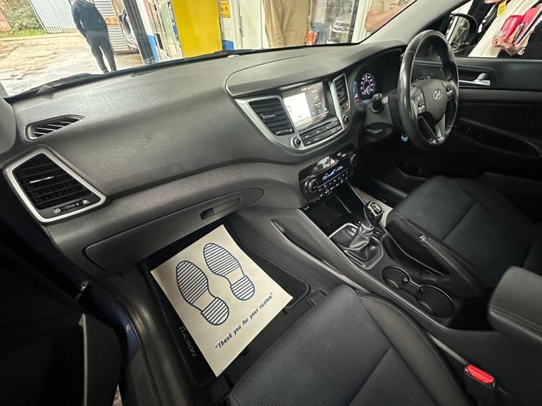 This 2018 Hyundai TUCSON GDi SE Nav boasts a full dealership service history, ensuring excellent provenance for this well maintained vehicle. With only one owner since new and a clear vehicle history check, this 1.6 litre petrol model is presented in Euro 6 standard. It comes with a 3 month warranty and a 12 month MOT provided on purchase, with the last service completed on 2025-11-12. Notable features include heated front seats for added comfort, rear parking sensors to aid manoeuvrability, and dual zone climate control with an ioniser for a pleasant cabin environment. Enjoy seamless connectivity with Bluetooth and automatic headlights that activate with a dusk sensor.This Hyundai TUCSON offers several advantages over similar vehicles. Its impressive fuel economy of 45 mpg means fewer trips to the petrol station, and its low insurance group rating can help keep running costs down. The generous boot space provides ample room for luggage or shopping, making it a practical choice for everyday use and longer journeys..