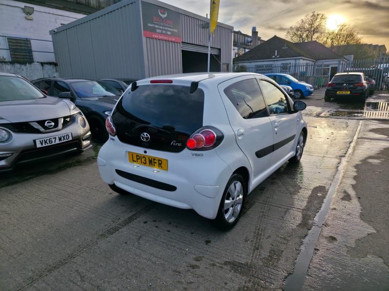 This 2013 Toyota AYGO VVT-i Fire boasts a full service history, offering peace of mind alongside its impressive fuel economy. This particular AYGO, with its 1.0L petrol engine and Fire trim, comes with a clear vehicle history check and is protected by a 3 month warranty. Notable features include the Technology Pack 1 and XtraProtected Pack, enhancing both convenience and security. Inside, you'll find a console box with a leather cover and a sliding mechanism, alongside air conditioning to ensure a comfortable drive.The AYGO VVT-i Fire stands out with its exceptional fuel economy, achieving an impressive 63 miles per gallon, which is better than many other vehicles in its class. Furthermore, its low CO2 emissions and low insurance group rating make it a very economical choice for everyday driving. These factors combined indicate a vehicle that is not only efficient but also cost effective to own and run..