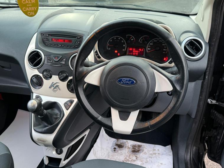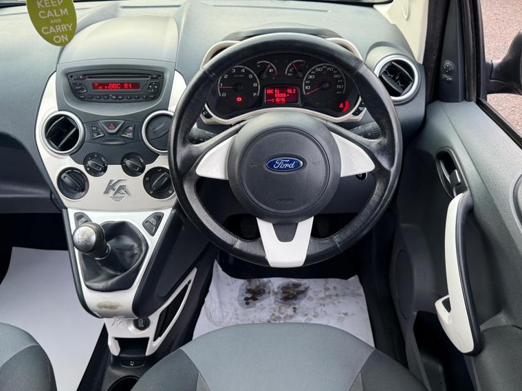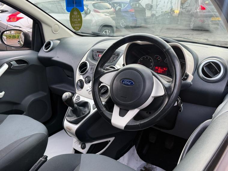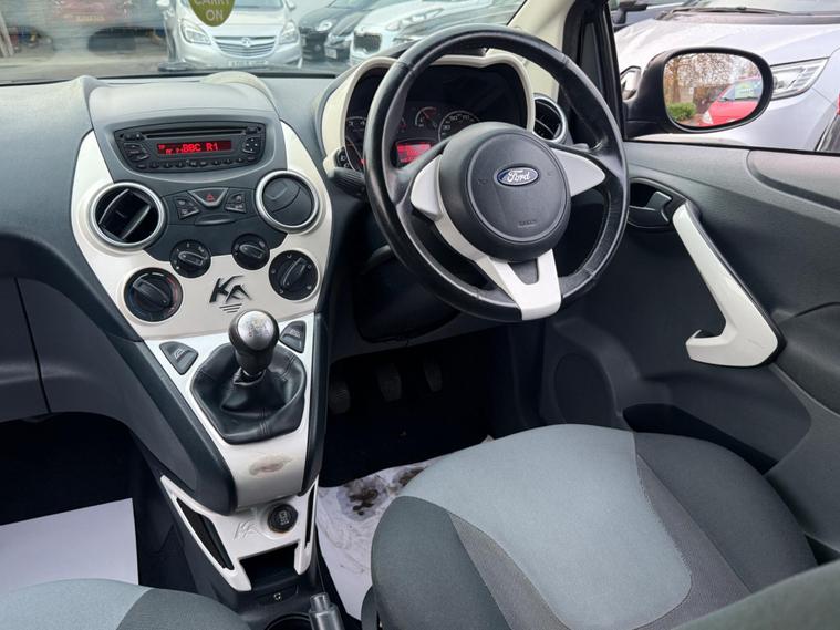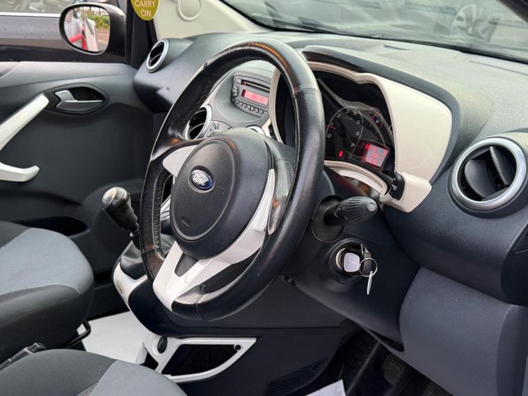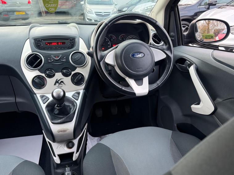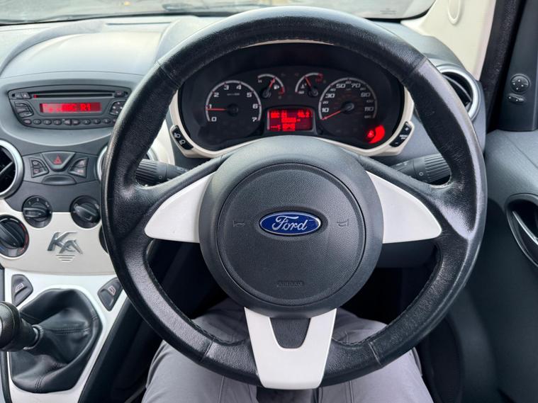 Discover this 2014 Ford Ka Zetec, a smart choice for city driving. This model boasts a 1.2L petrol engine and meets Euro 6 emission standards, making it an environmentally conscious option. Inside, you'll appreciate the comfortable leather steering wheel and the stylish Pearl White centre console. Practicality is also key, with features like Hill Start Assist to make pulling away on inclines effortless, and tilt adjustment for the steering column to ensure a comfortable driving position. The removable package tray adds further versatility for carrying your belongings.This Ford Ka Zetec offers excellent value, highlighted by its low insurance group, which can help keep your running costs down. You can also expect impressive fuel economy, achieving up to 58 miles per gallon, and low CO2 emissions. These factors combined demonstrate how this Ka is a more economical and efficient choice compared to many other vehicles in its class..