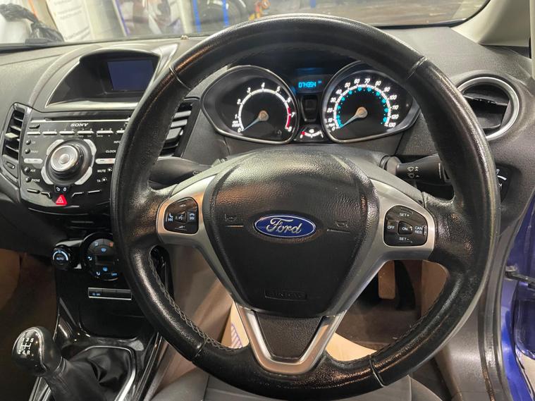 This 2015 Ford Fiesta T Titanium is a fantastic example of a well maintained and popular hatchback. It boasts a 1.0 litre petrol engine and meets the Euro 6 emission standards, making it an environmentally conscious choice. Inside, you'll find the convenience of Bluetooth hands free phone connectivity, allowing you to stay connected safely on the go. The EATC electronic automatic temperature control ensures a comfortable cabin environment regardless of the weather, and automatic headlights provide added ease and safety by illuminating the road when needed.This particular Ford Fiesta stands out with its impressive fuel economy, achieving a remarkable 66 miles per gallon. This efficiency, combined with its low CO2 emissions, indicates that this vehicle offers a more economical and greener driving experience compared to many others in its class. It represents a smart choice for those seeking a reliable and cost effective compact car..
