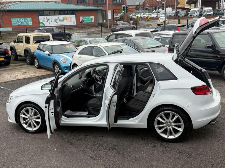 Here we have a fine example of a Audi A3 1.8 TFSI Sport Sportback S Tronic quattro Euro 6 (s/s) 5dr (Nav). VERY TIDY, FULLY LOADED WITH LOADS OF OPTIONAL EXTRAS, SERVICE HISTORY AND A LONG MOT. MUST SEE...AS PART OF THE AA GROUP WE OFFER 12 MONTHS FREE AA BREAKDOWN COVER WITH EVERY CAR SOLD & 5 DAYS DRIVEAWAY INSURANCE AVAILABLE (T&C's apply).KEY FEATURES: (TO BE CONFIRMED) Xenon Lights, Sat Nav, Reverse Camera, Adaptive Cruise Control, Parking Sensors (Front & Rear), Sport Seats, Hand Controls, Bluetooth, ISOFIX, Quick Clear Screen ( Rear), Front & Rear Electric Windows, Electric, Heated & Folding Mirrors, Cup Holders, USB & AUX Features and more.SERVICE HISTORY: MOT CHECKS @ (96.5KM & 113KM) 59K 70K & 77K Miles. NEXT MOT DUE 18/06/2026 (NO ADVISORIES).LAST SERVICED 18/08/2025 @ 77, 333 MILES.ALL DEBIT AND CREDIT CARD PAYMENTS ACCEPTED. PART EXCHANGE ALWAYS WELCOME. EVENING VIEWINGS AVAILABLE ON REQUEST. OPEN 7 DAYS A WEEK, VISIT dealer's website WITH OVER 100 CARS IN STOCK..