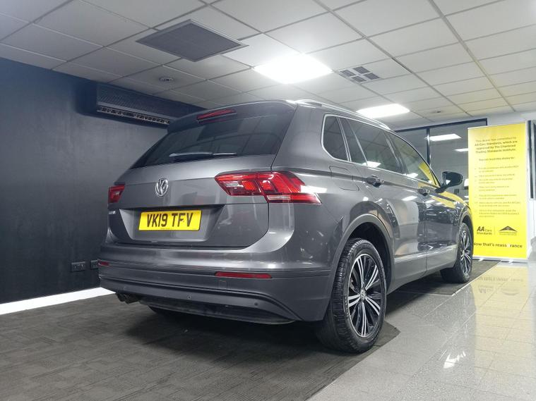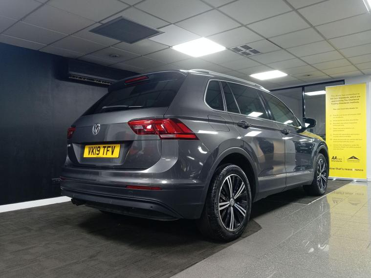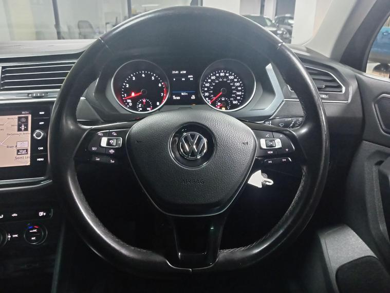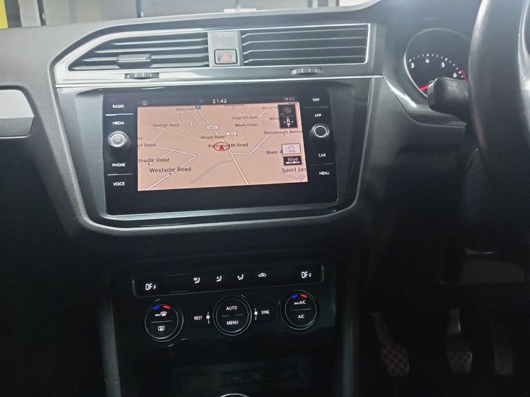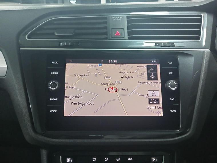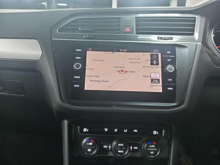 This 2019 Volkswagen Tiguan TSI EVO SE Navigation boasts a clear vehicle history, offering you peace of mind. Powered by an efficient 1.5 litre petrol engine, this Euro 6 compliant model is presented in the SE Navigation trim. It comes equipped with a 3Zone Electronic Climate Control system for personalised comfort, front and rear parking sensors to aid manoeuvrability, and Adaptive Cruise Control for relaxed journeys. The Composition Media System includes Bluetooth connectivity, and automatic driving lights are activated by a dusk sensor.The Tiguan stands out with its low CO2 emissions, contributing to a more environmentally conscious drive. Its large boot space makes it incredibly practical for families and everyday needs, while its low insurance group rating means it is also economical to own. These factors combined indicate that this Tiguan offers a superior ownership experience compared to many other vehicles in its class..