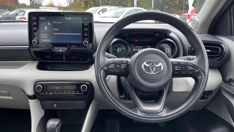 This 2022 Toyota Yaris VVT-h Excel is a Toyota manufacturer approved vehicle, offering peace of mind with its proven credentials. This Euro 6 compliant model features a 1.5L Petrol Hybrid engine and comes equipped with desirable features such as LED headlights, smart entry with push button start, and dual zone automatic air conditioning for your comfort. Safety is enhanced with blind spot monitoring, and automatic headlights ensure optimal visibility.The Yaris VVT-h Excel stands out with its impressive fuel economy, achieving a remarkable 66 miles per gallon, which indicates it is more economical than many other vehicles in its class. Furthermore, its low CO2 emissions highlight its environmental consideration. This combination of efficiency, advanced technology, and manufacturer approval makes this Yaris a compelling choice..