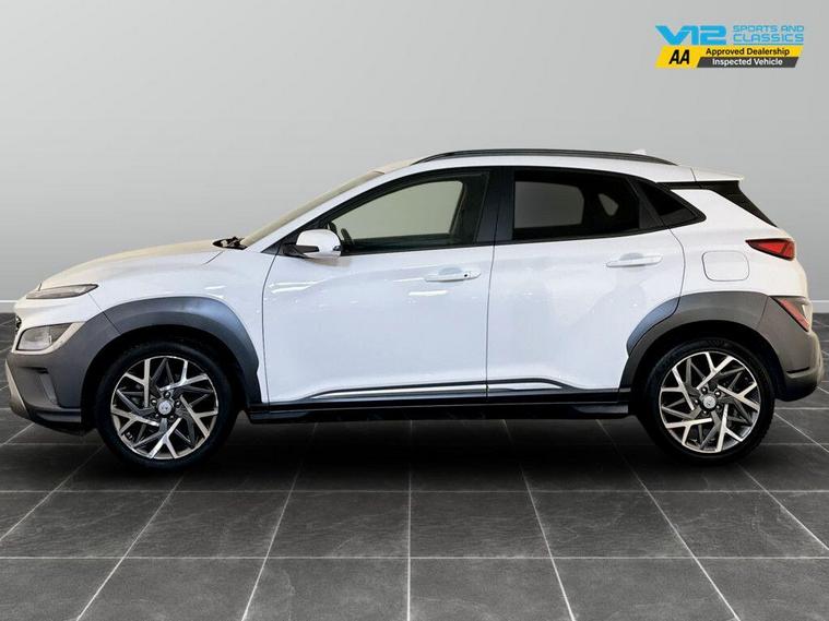 This 2023 Hyundai KONA h GDi Premium offers a service history, providing a good overview of its past maintenance. This stylish SUV is equipped with a 1.6 litre petrol hybrid engine and meets Euro 6 emission standards. Inside, you'll find a Premium trim level that includes convenient features such as Apple CarPlay for seamless phone integration, a wireless phone charging pad, and keyless entry with a push button start. Enjoy effortless connectivity with Bluetooth and a heated steering wheel for added comfort on colder journeys. The Hyundai KONA h GDi Premium stands out with its impressive fuel economy, achieving up to 57 miles per gallon, which indicates it is more economical than many similar vehicles. Furthermore, its low insurance group rating suggests that running costs will be more affordable. The vehicle also boasts low CO2 emissions, highlighting its environmental credentials and potentially lower tax implications compared to other cars in its class. For peace of mind this vehicle comes with service history and has completed a multi point AA inspection.Vehicle specification can be found below. From time to time vehicles have manufacturer recalls notified. Please read our recall policy on our website for further information. This vehicle comes with an AVILOO Battery Health Certificate - the global standard for EV battery testing. Full independent analysis confirms excellent battery condition with detailed State of Health assessment, cell-level checks, and accurate range data. Certificate included with purchase for your complete peace of mind and future resale value..