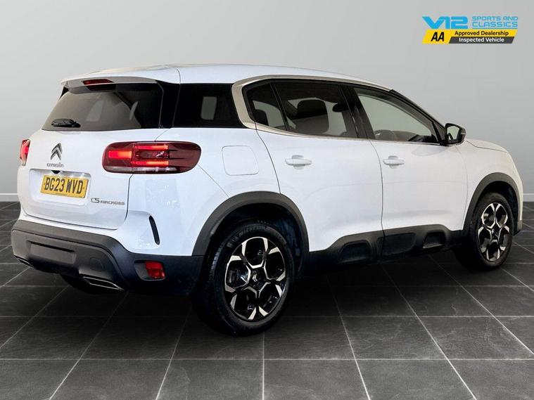 This 2023 Citroen C5 Aircross Sense Plus offers a refined driving experience with its Euro 6 compliant 1.2 litre petrol engine. As a Sense Plus trim, this model comes equipped with automatic headlights that feature welcome and goodbye lighting, alongside advanced LED headlights for superior visibility. The acoustic laminated windscreen, complete with rain and brightness sensors, enhances comfort and convenience. Inside, you'll find automatic dual zone climate control to keep everyone comfortable, and the City Camera Pack provides front and rear parking sensors along with a rear camera, making manoeuvring effortless. The Citroen C5 Aircross Sense Plus stands out with its impressive fuel economy, achieving up to 49 miles per gallon, which indicates it is more economical than many similar vehicles. Furthermore, its low CO2 emissions highlight its environmental consideration. This model also boasts a large boot space, offering practical versatility for all your needs, demonstrating its advantage over other vehicles in its class. For peace of mind this vehicle has completed a multi point AA inspection. Competitive finance is also available.We are open 7 days a week and have more than 1500 cars to choose from.All our Euro 4 Petrol and Euro 6 Diesel vehicles meet the ULEZ standard.Vehicle specification can be found below. From time to time vehicles have manufacturer recalls notified. Please read our recall policy on our website for further information..