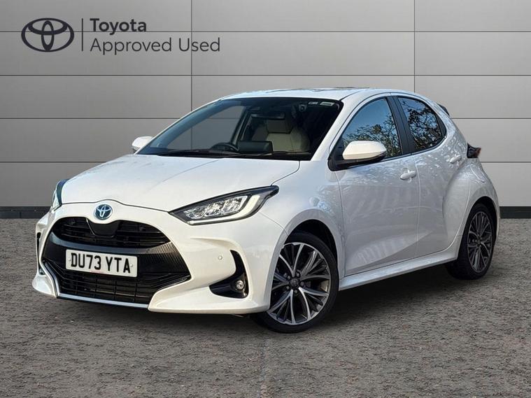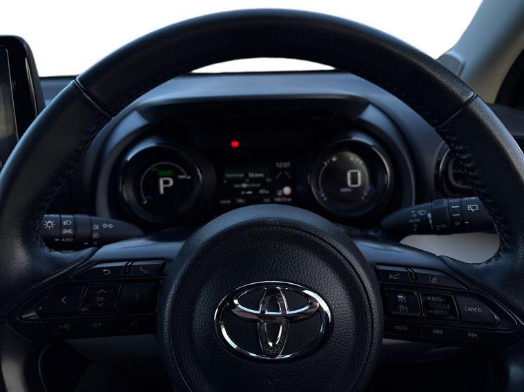This 2023 Toyota Yaris VVT-h Excel is a truly exceptional example, boasting a full service history and remaining under Toyota manufacturer approval, offering you complete peace of mind. As a single owner vehicle, this Yaris has been meticulously cared for and comes with a 12 month warranty for added security. The 1.5L Petrol Hybrid engine, compliant with Euro 6 emissions standards, is paired with the well appointed Excel trim, featuring a convenient Parking Pack with front and rear sensors, Smart Entry for keyless access, and Bluetooth connectivity for seamless phone integration. Enjoy effortless journeys with Adaptive Cruise Control and the convenience of Automatic Headlights.Experience outstanding efficiency with this Yaris, achieving an impressive 66 mpg, a highlight that clearly sets it apart from many other vehicles in its class. Its low CO2 emissions further contribute to its economical and environmentally conscious performance. The MOT is valid until September 2026, ensuring its roadworthiness for years to come. This combination of low ownership, comprehensive servicing, manufacturer approval, and exceptional fuel economy makes this Toyota Yaris VVT-h Excel a standout choice..